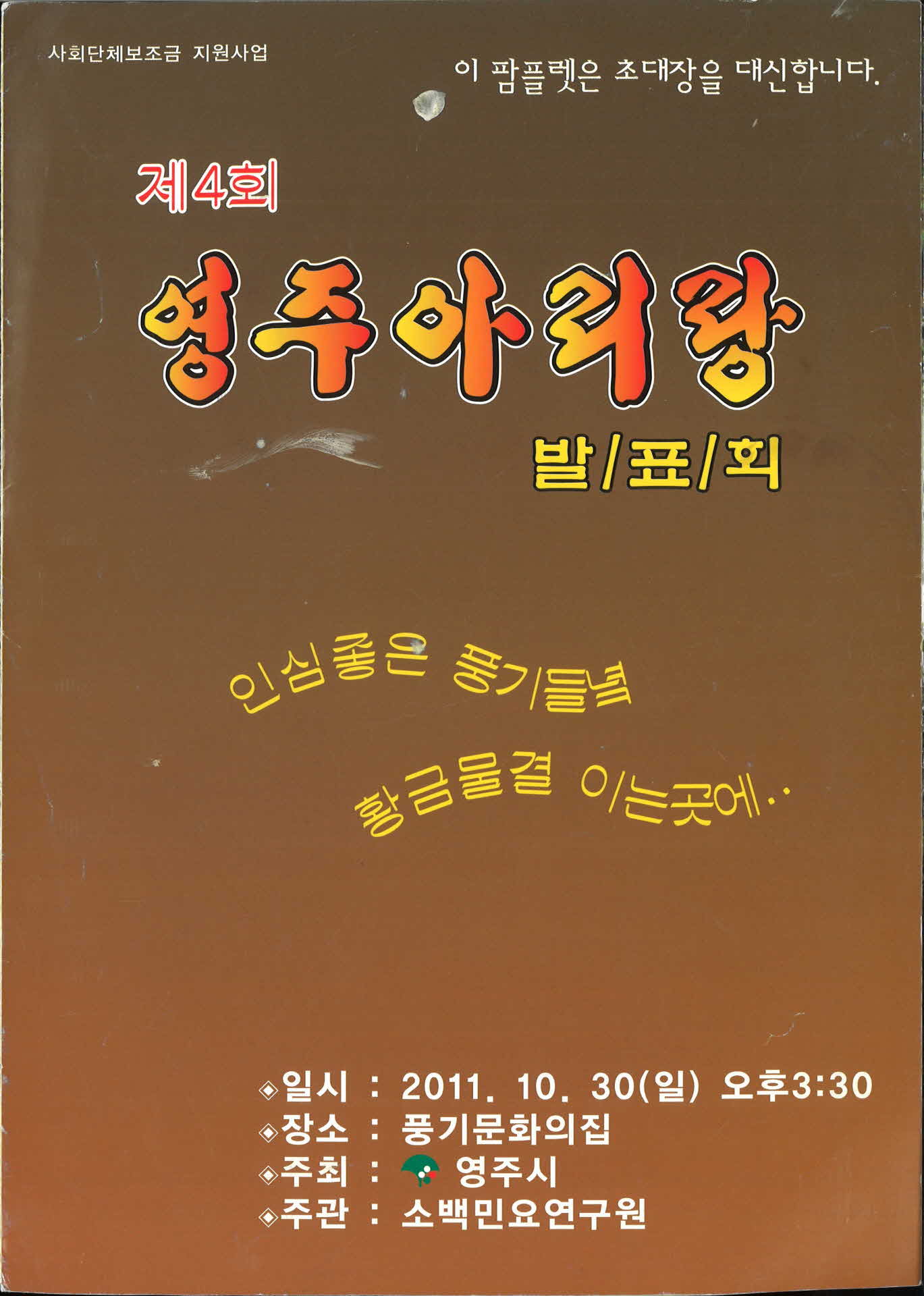 | 기록물명 | 2011 제4회 영주아리랑 발표회 | ||