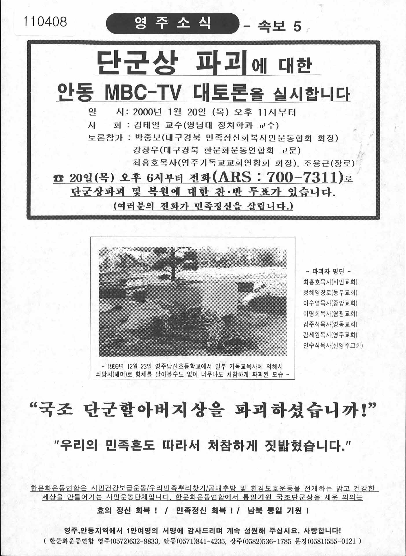 단군상 파괴에 대한 안동 MBC-TV 대토론회 홍보 팜프렛