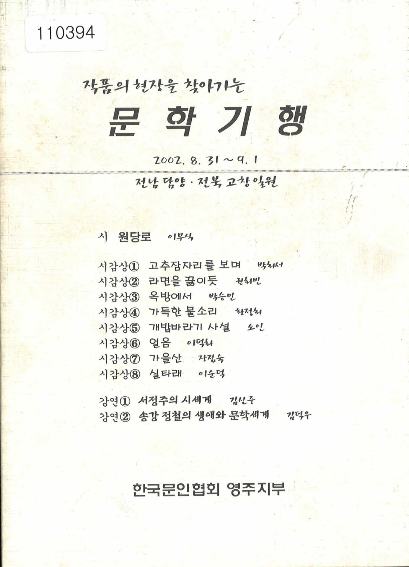 | 기록물명 | 한국 문인협회 영주지부 「문학기행」 | ||