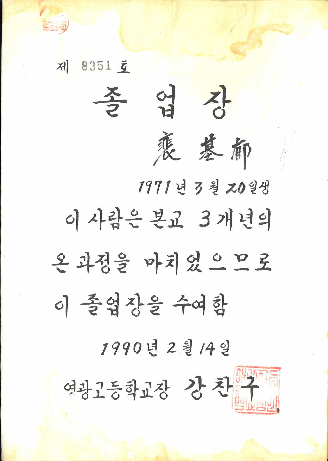 | 기록물명 | 영광고등학교 졸업장 | ||