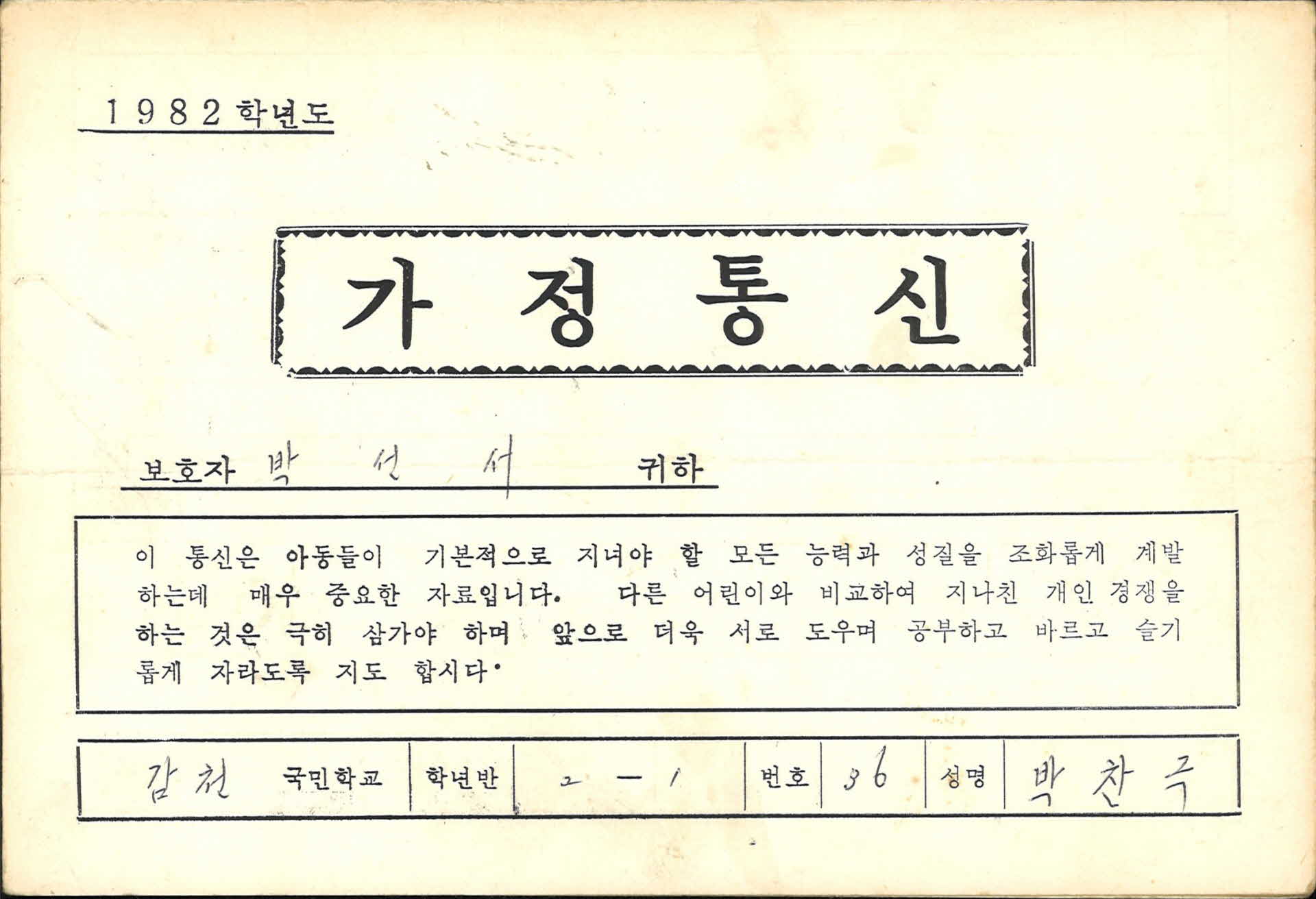 | 기록물명 | 1982년 감천국민학교 가정통신 | ||