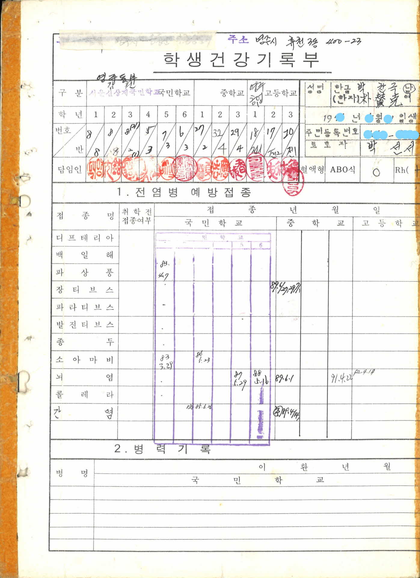 | 기록물명 | 1983년 학생건강기록부 | ||