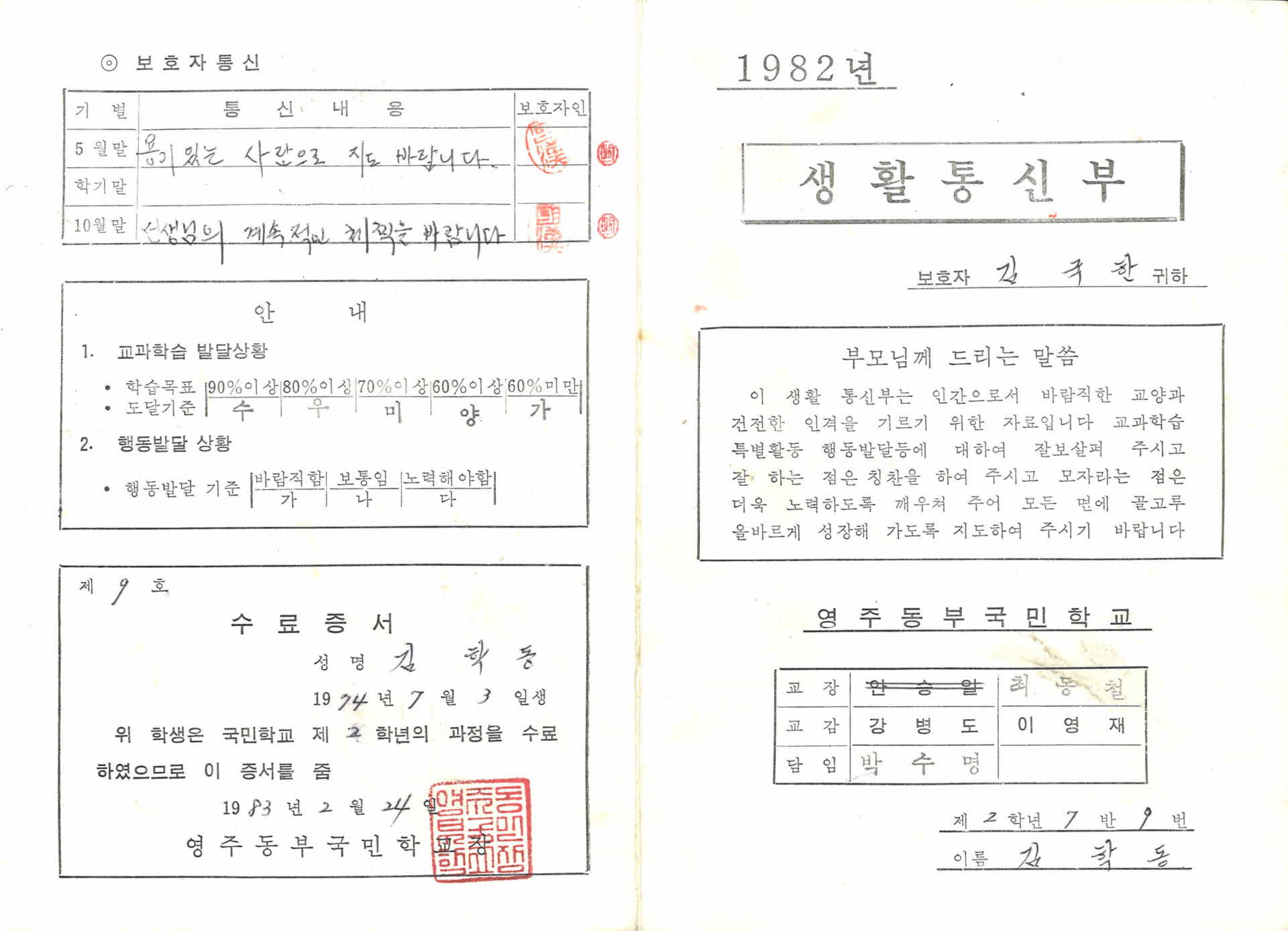 | 기록물명 | 1982년 영주동부국민학교 생활통신부 | ||