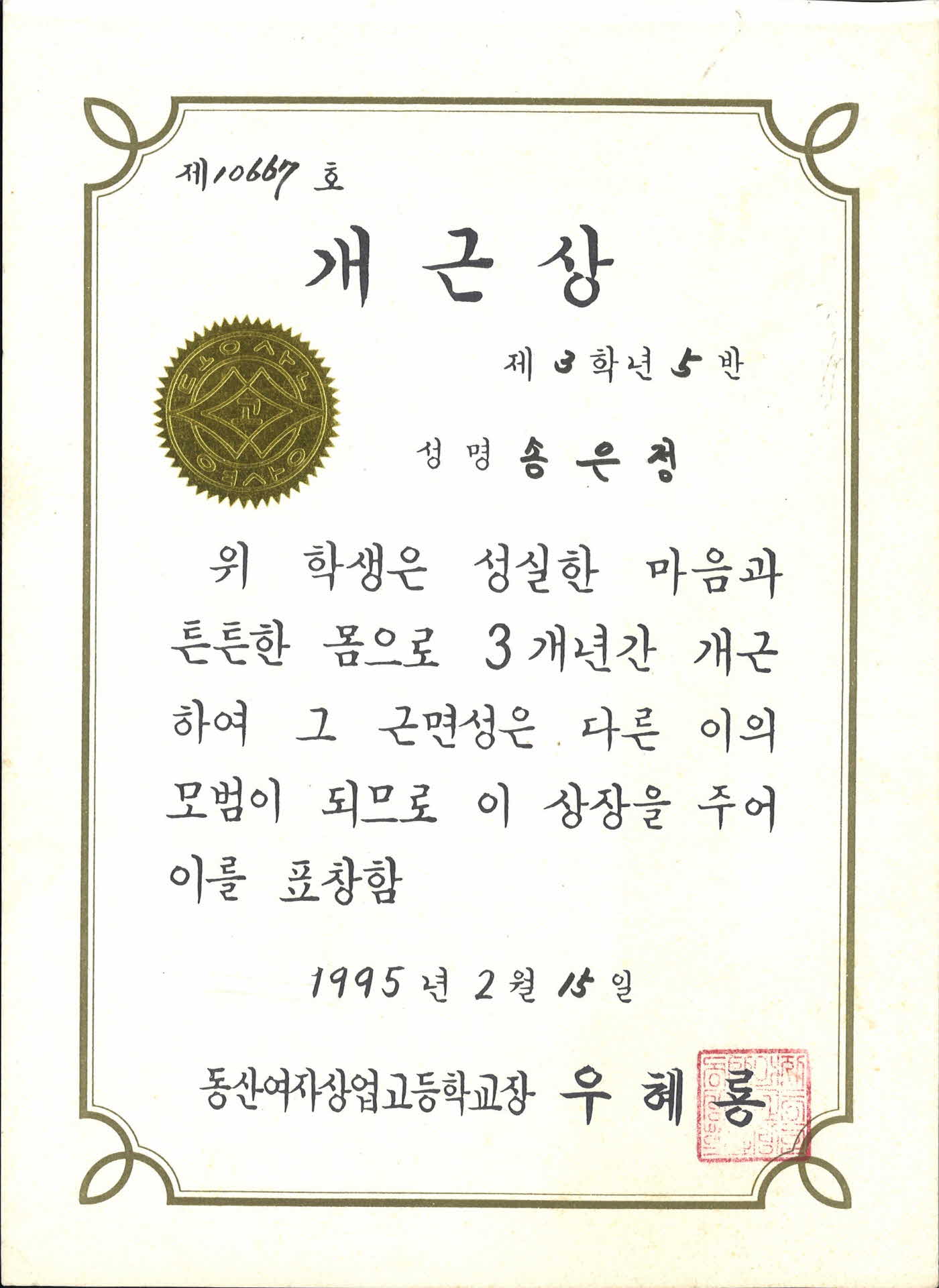 1995년 동산여상 3년 개근상 > 영주, 영주사람