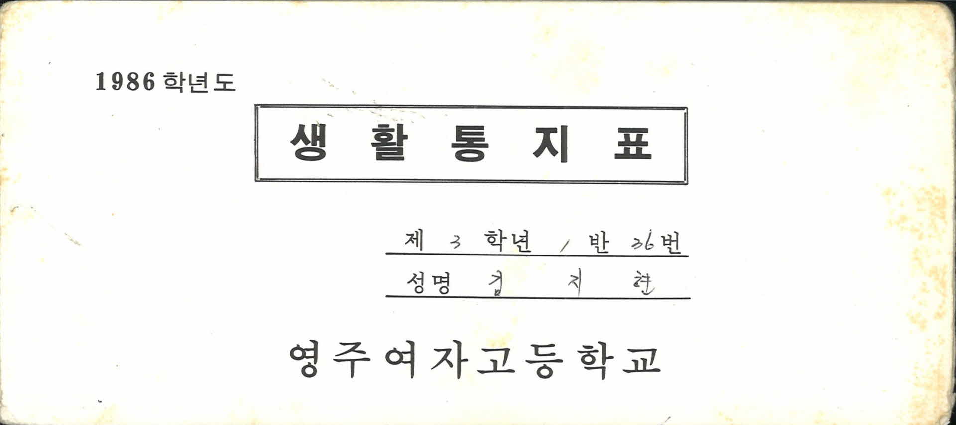 | 기록물명 | 1986년 영주여자고등학교 생활통지표 | ||