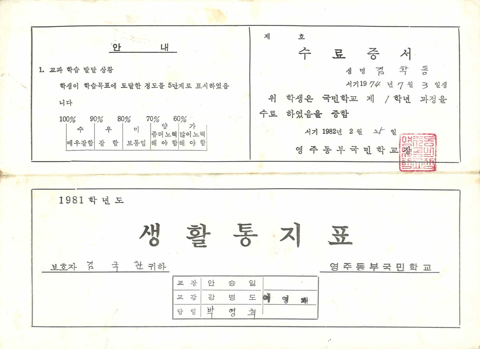 | 기록물명 | 1981년 영주동부국민학교 생활통지표 | ||