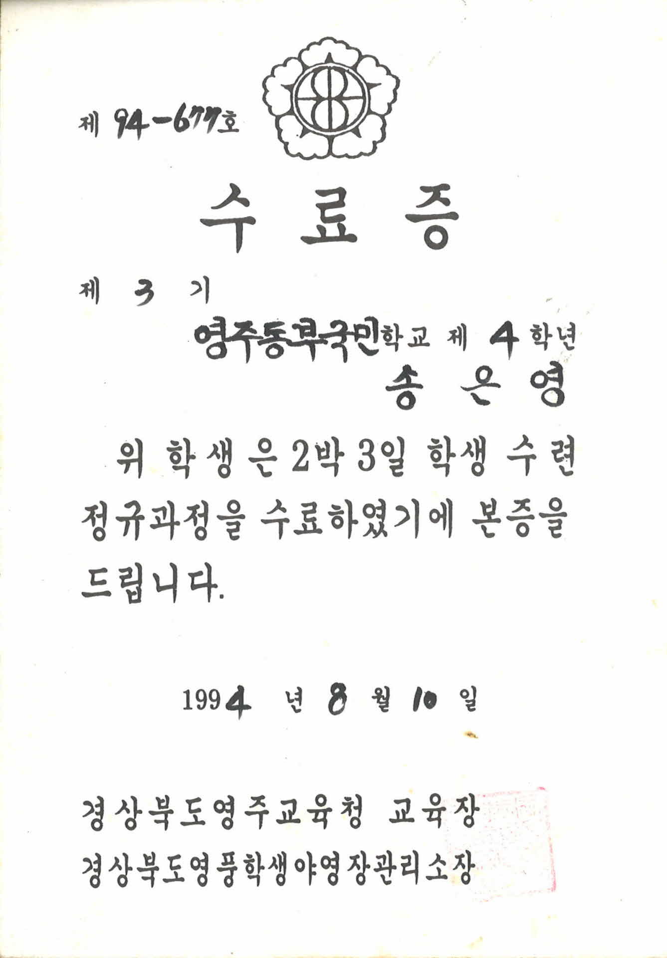 1994년 경북영풍학생야영장 수료증 > 영주, 영주사람