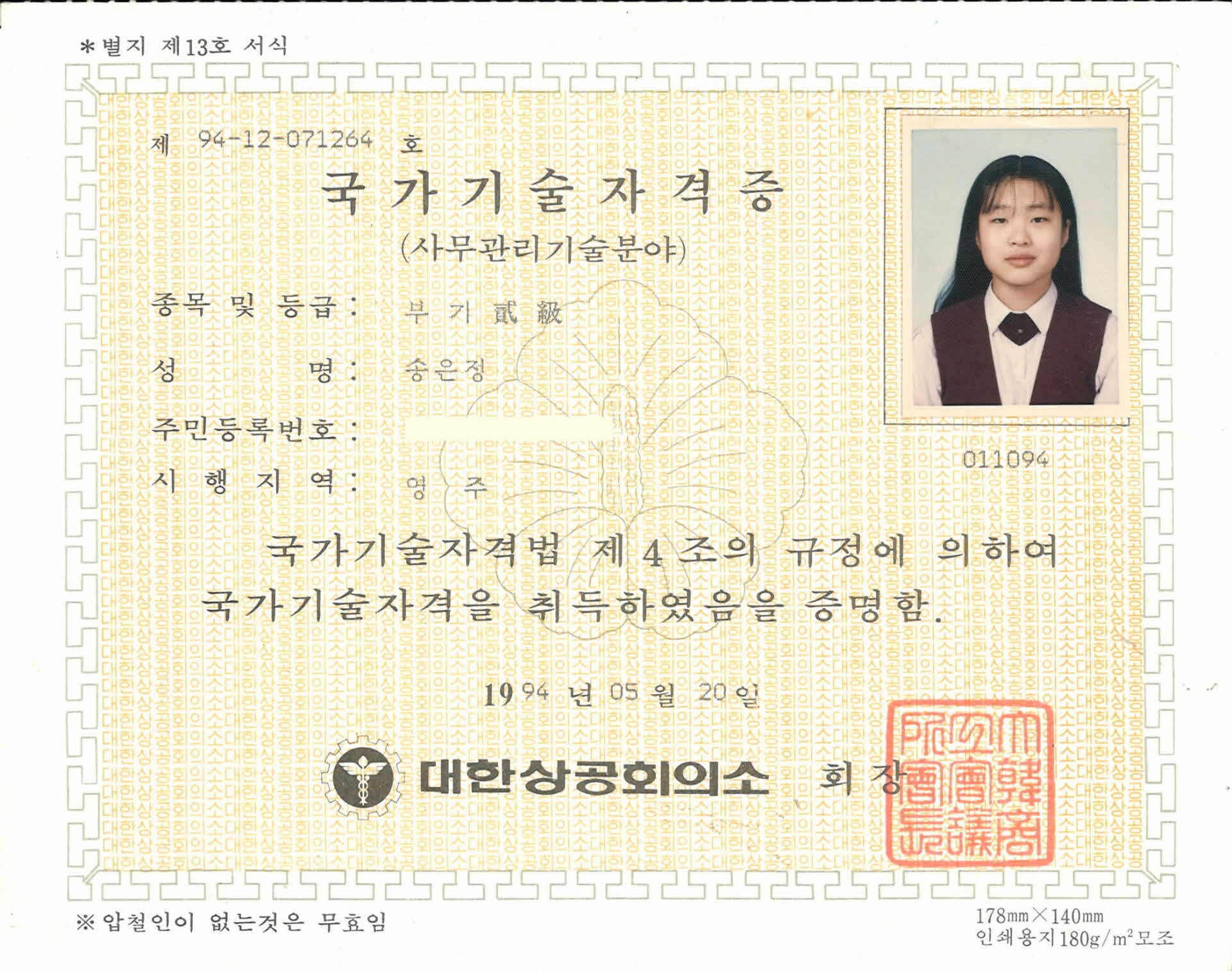 | 기록물명 | 부기 2급 국가기술자격증 | ||