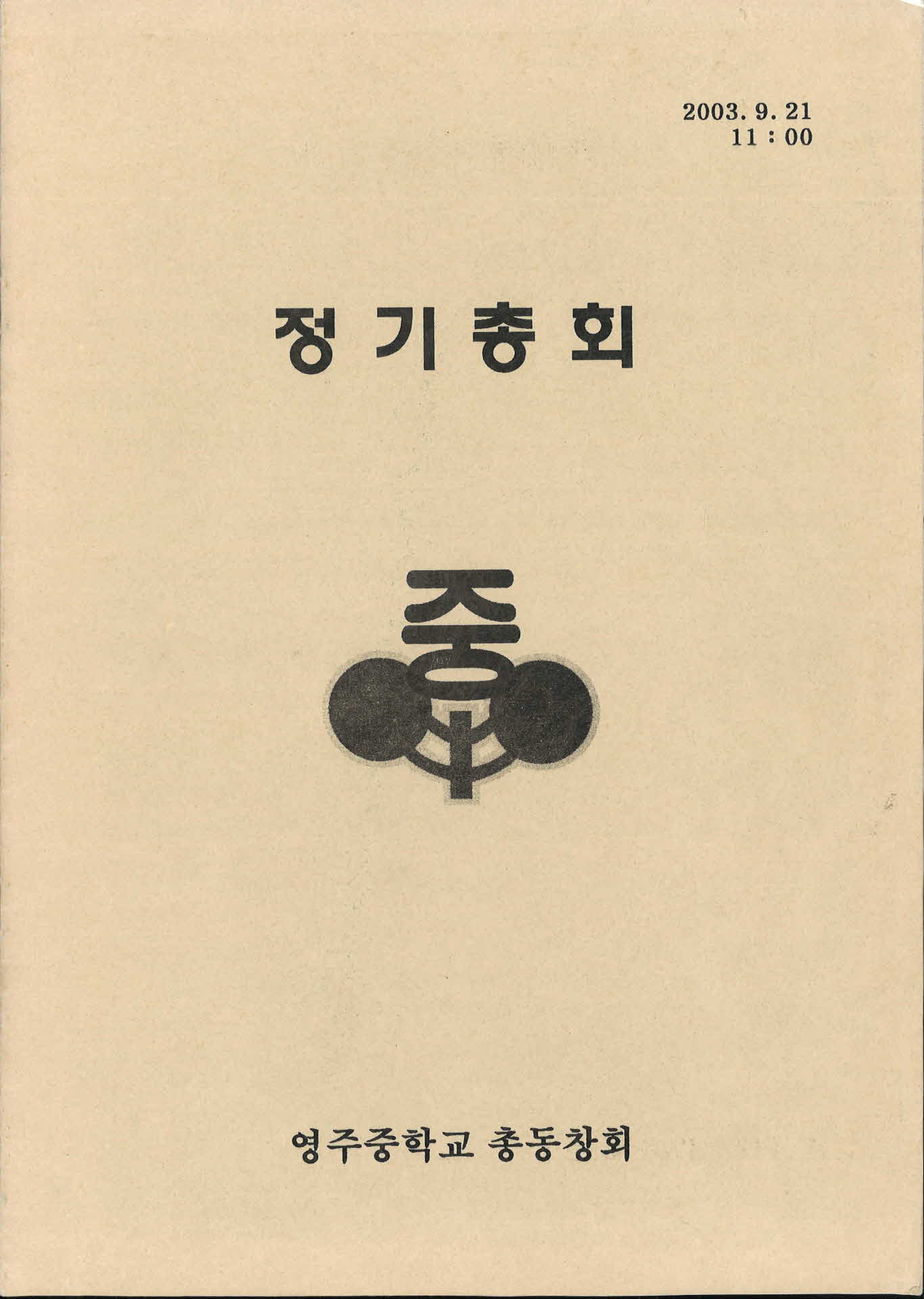 | 기록물명 | 영주중학교 총동창회 정기총회 자료집 | ||