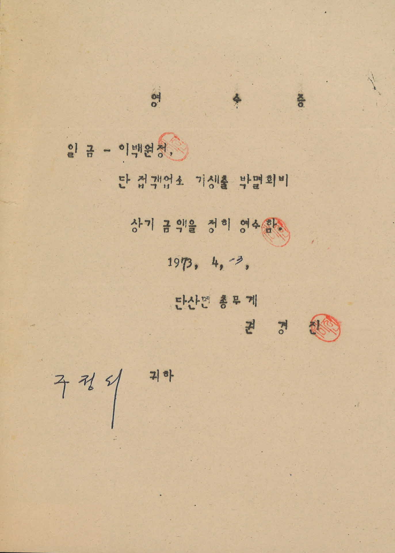 | 기록물명 | 단산면 접객업소 기생출 박멸회비 영수증 | ||