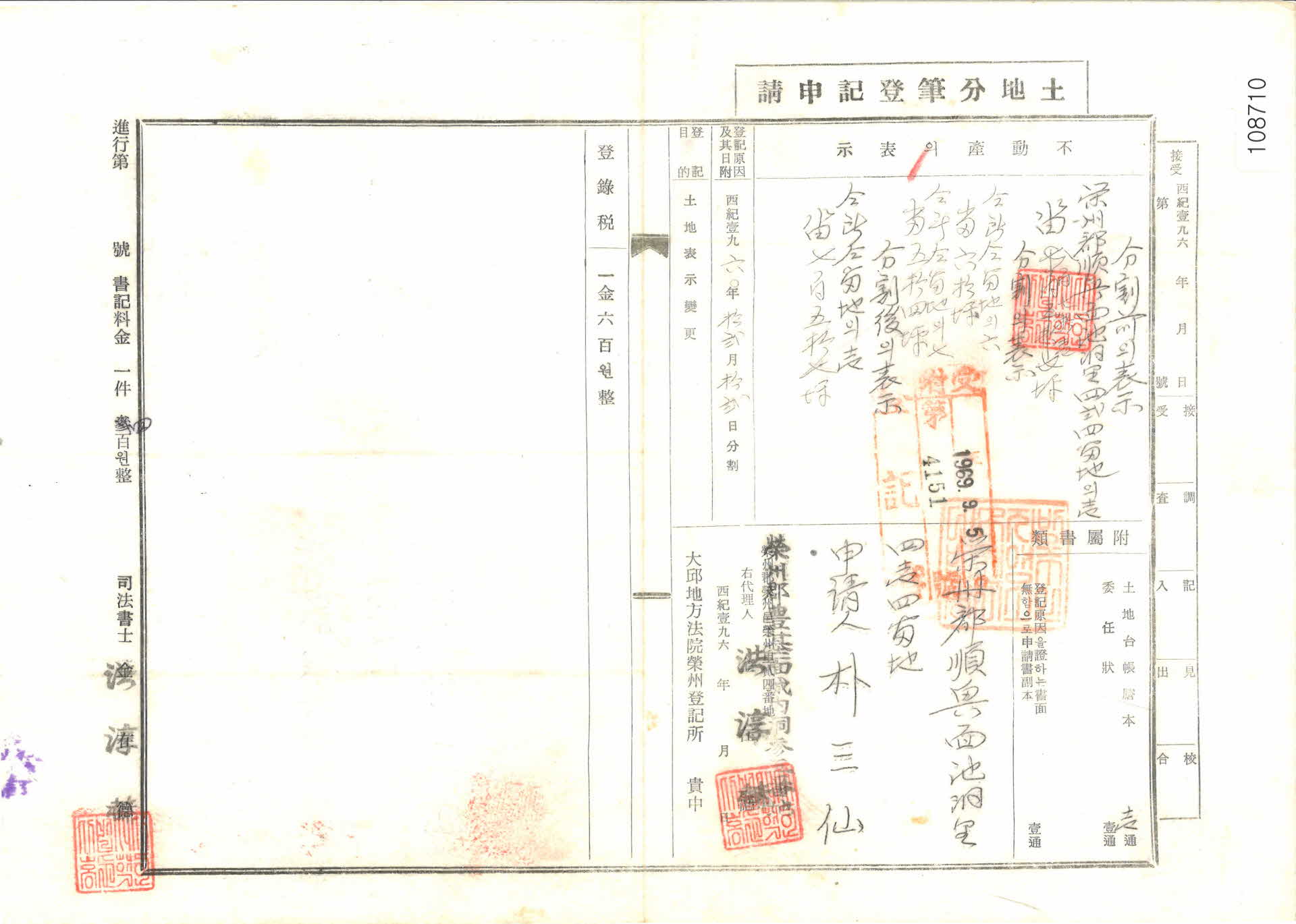 | 기록물명 | 토지분필, 등기신청서 | ||