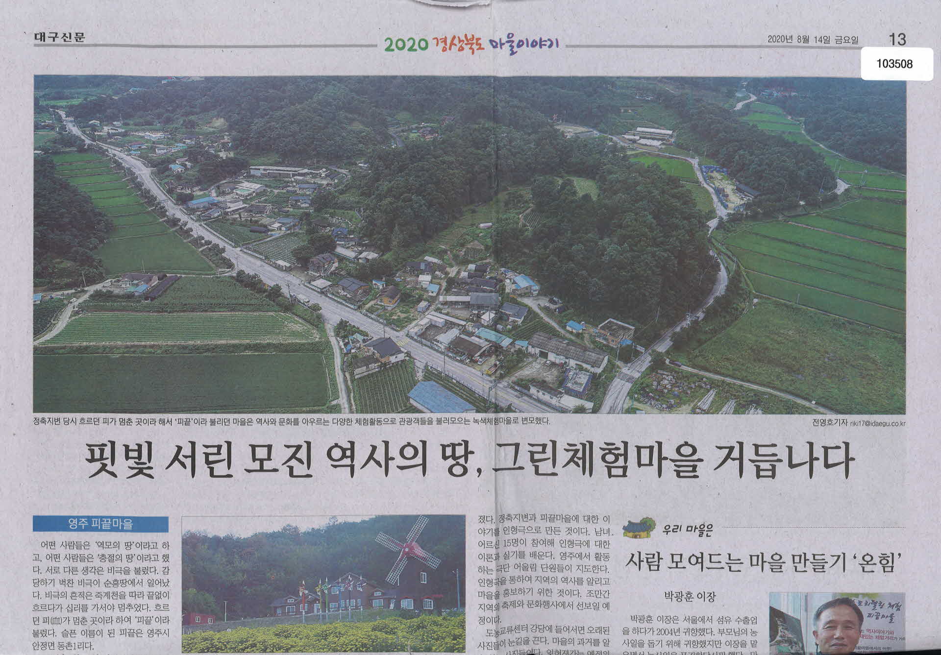 2020년 8월 14일 신문, 동촌1리 피끝마을 소개