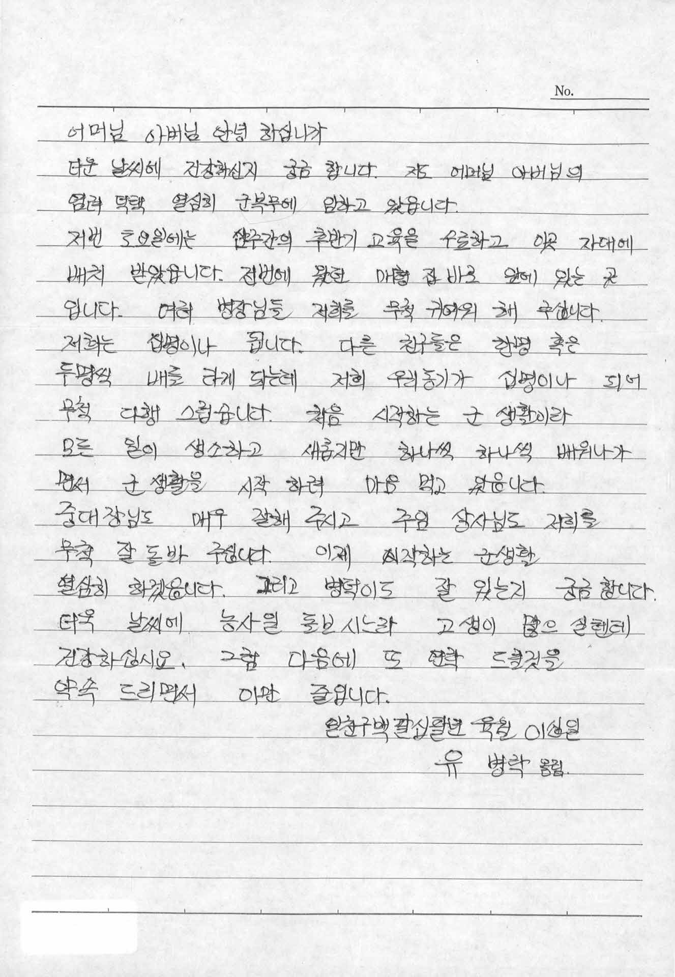 | 기록물명 | 군인생활시 부모님께 올리는 편지글 | ||