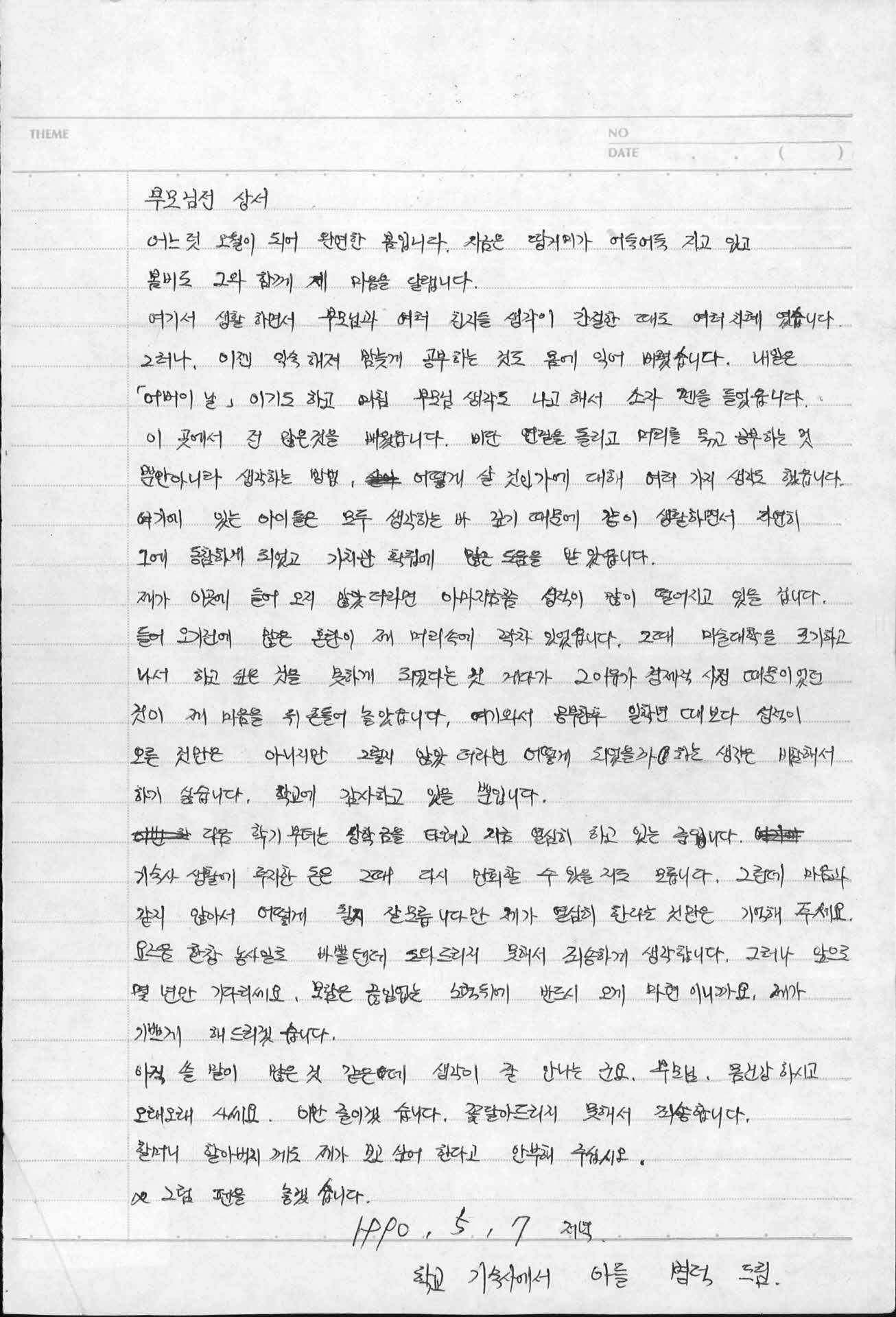 | 기록물명 | 기숙사생활 부모님께 올리는 편지글 | ||