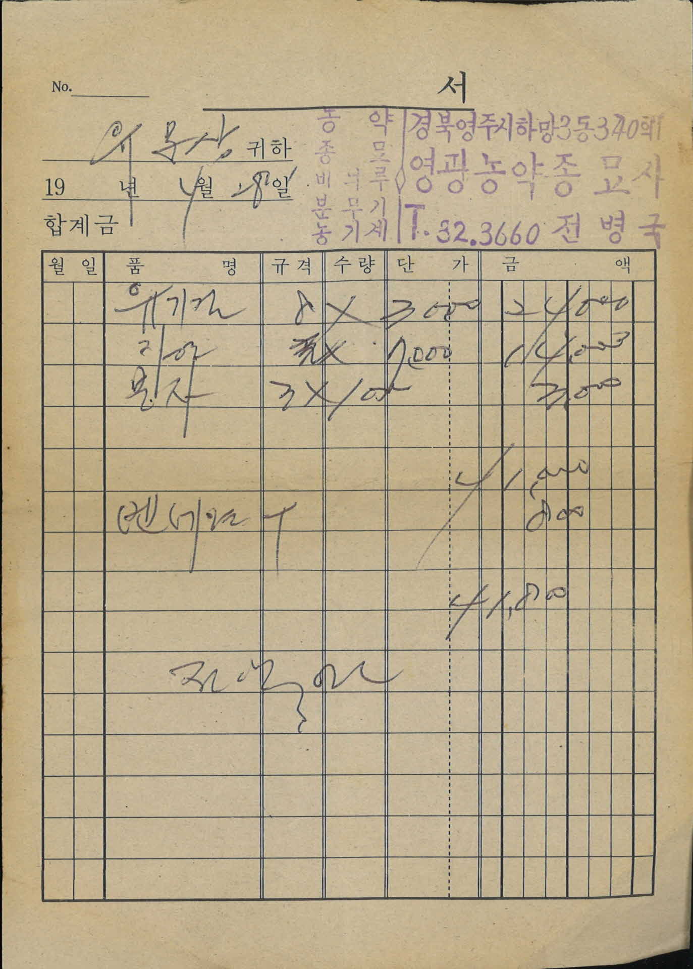 | 기록물명 | 영광농약종묘사 4월28일 영수증 | ||