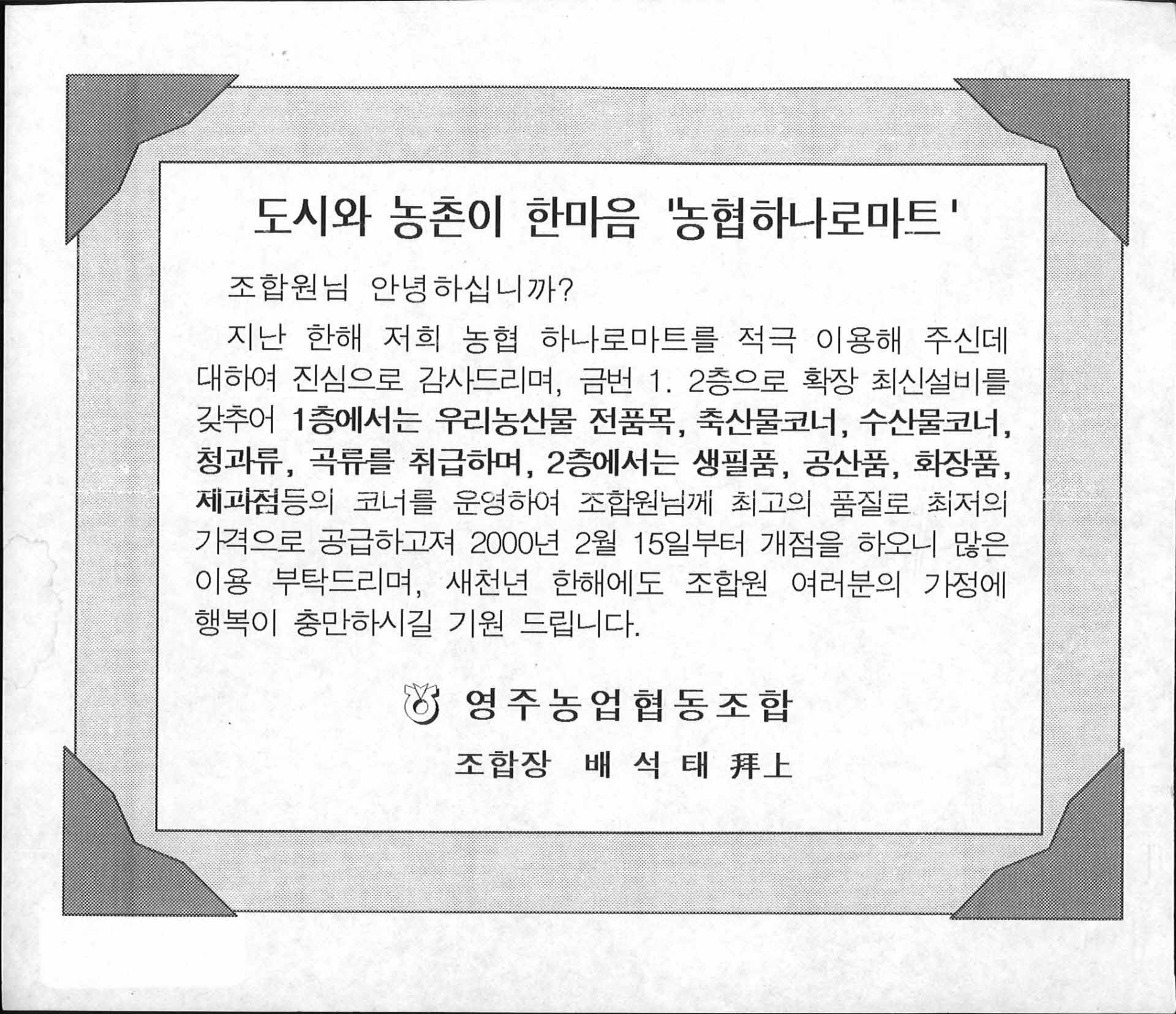 | 기록물명 | 농협하나로마트 개점 안내문 | ||