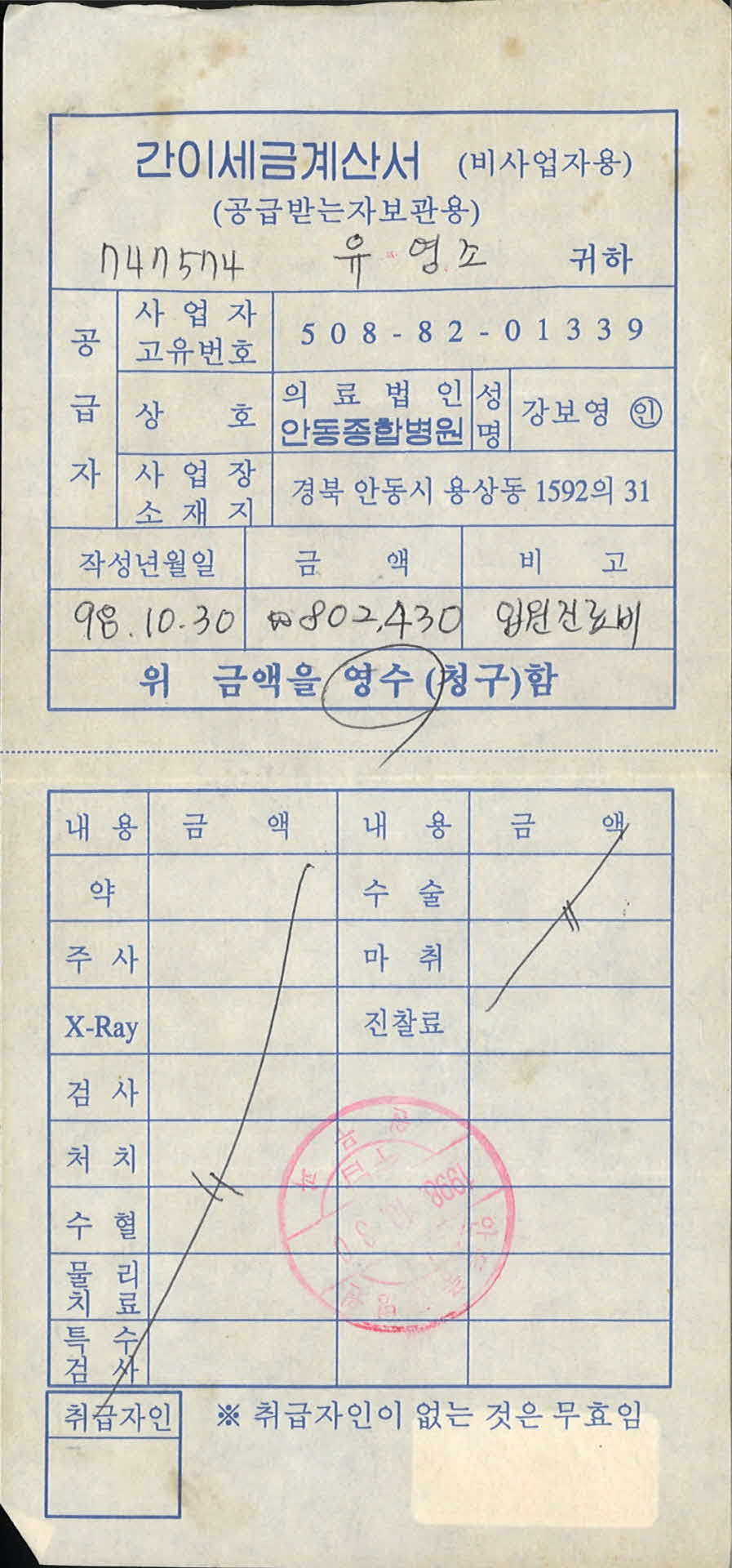 안동종합병원 세금계산서