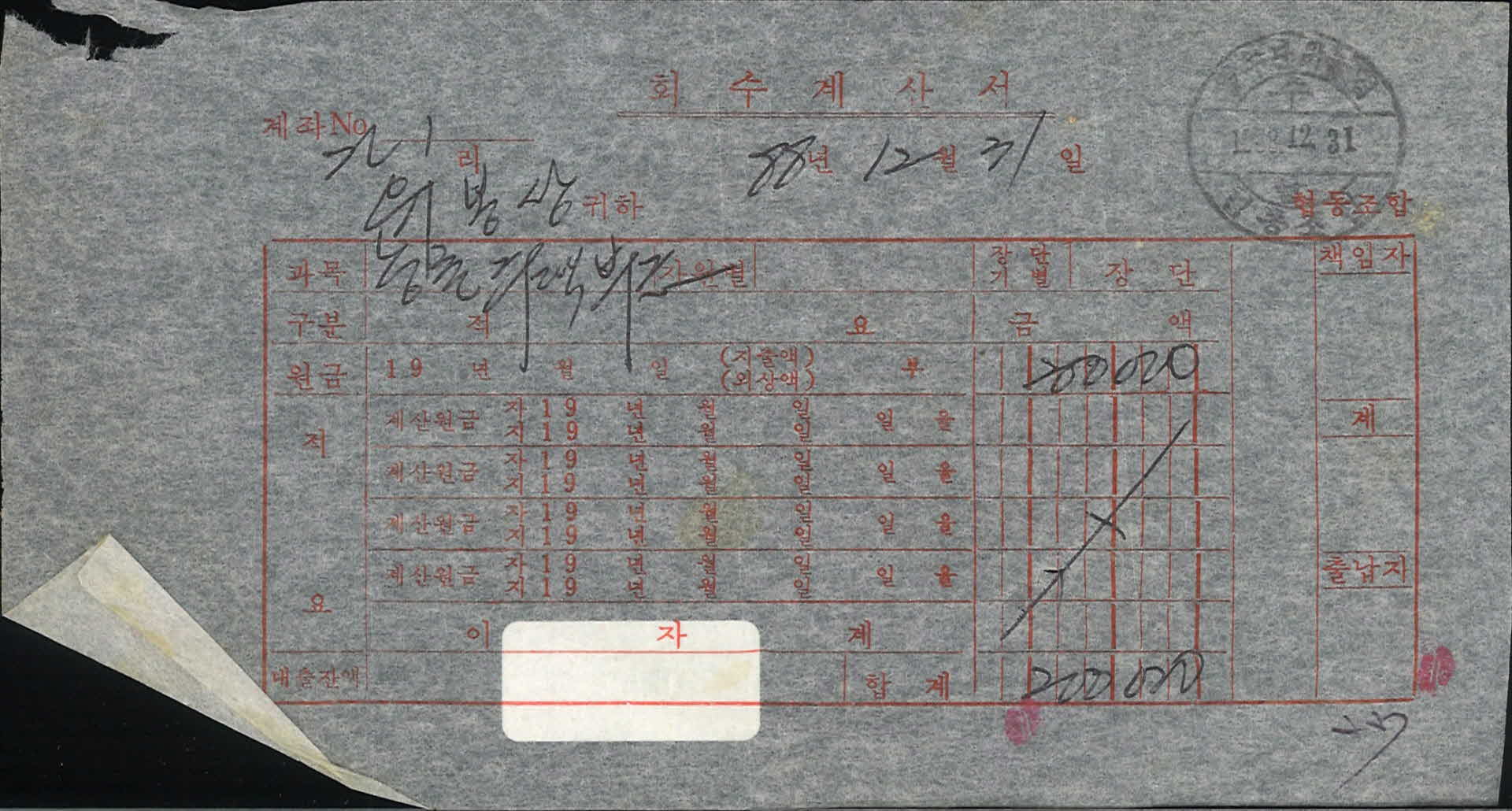 | 기록물명 | 1988년 12월 회수계산서 | ||