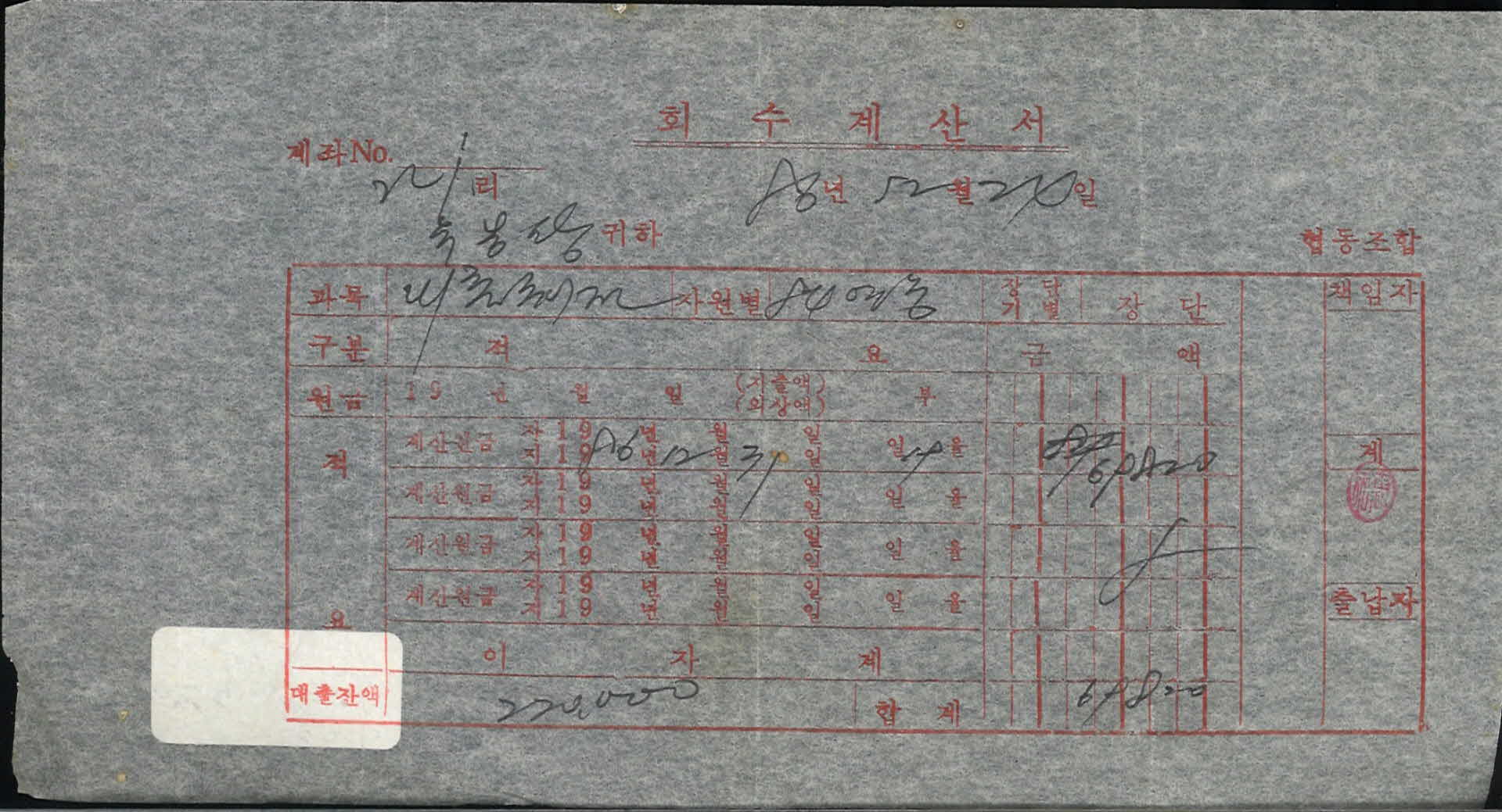 | 기록물명 | 1988년 2월 회수계산서 | ||