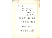 1986년 영주중학교장학금관리위원회 장학금 장학증서