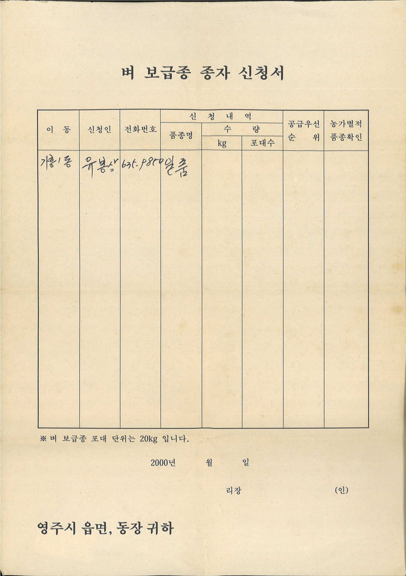 벼 보급종 종자 신청서 > 영주, 영주사람