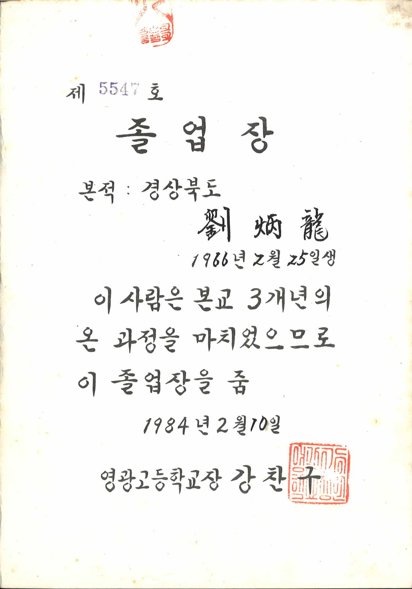 | 기록물명 | 영광고등학교 졸업장 | ||