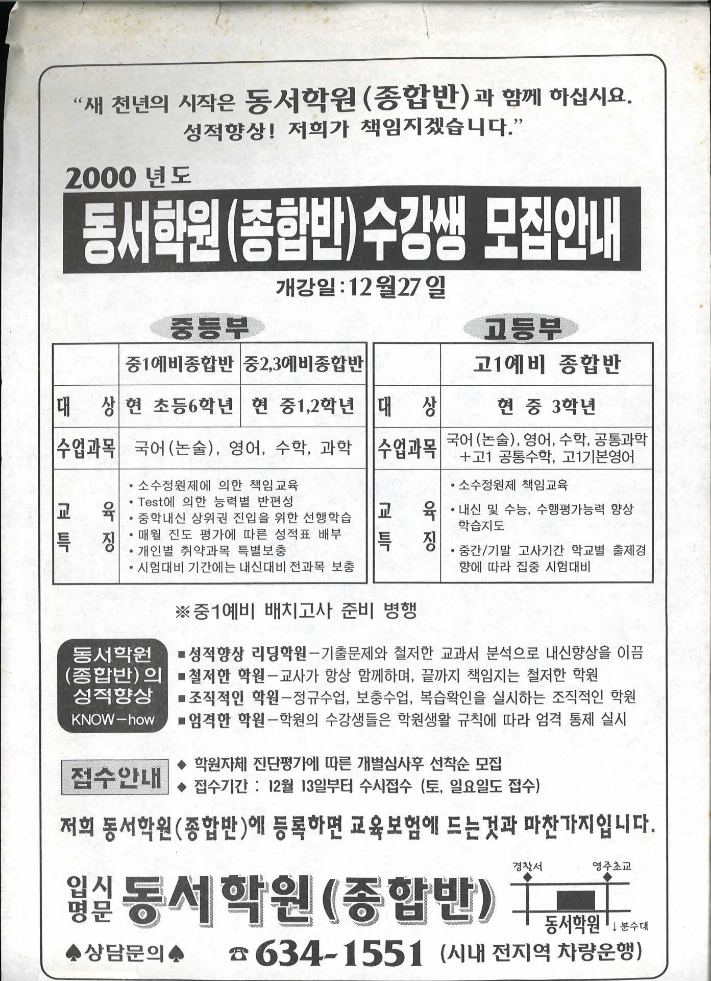 | 기록물명 | 동서학원 종합반 수강생 모집 | ||