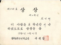 영주남부국민학교 우수상 상장