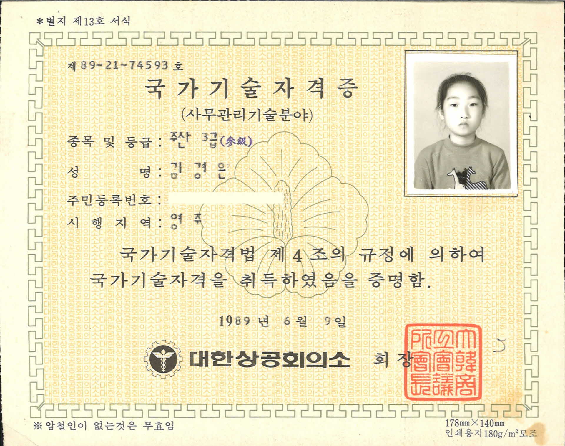 | 기록물명 | 대한상공회의소 국가기술자격증 사무관리기술 주산3급 | ||