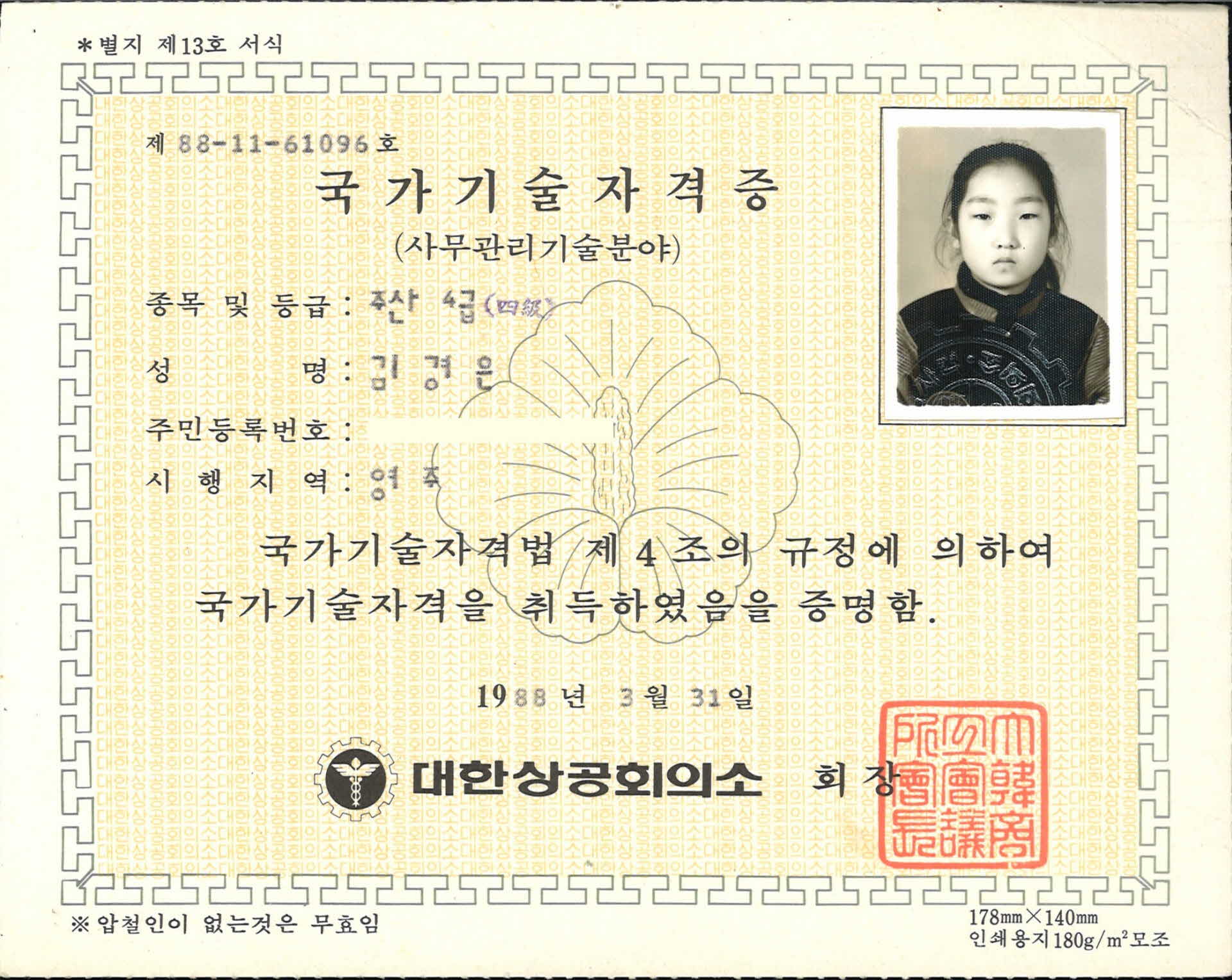 | 기록물명 | 대한상공회의소 국가기술자격증 사무관리기술 주산4급 | ||