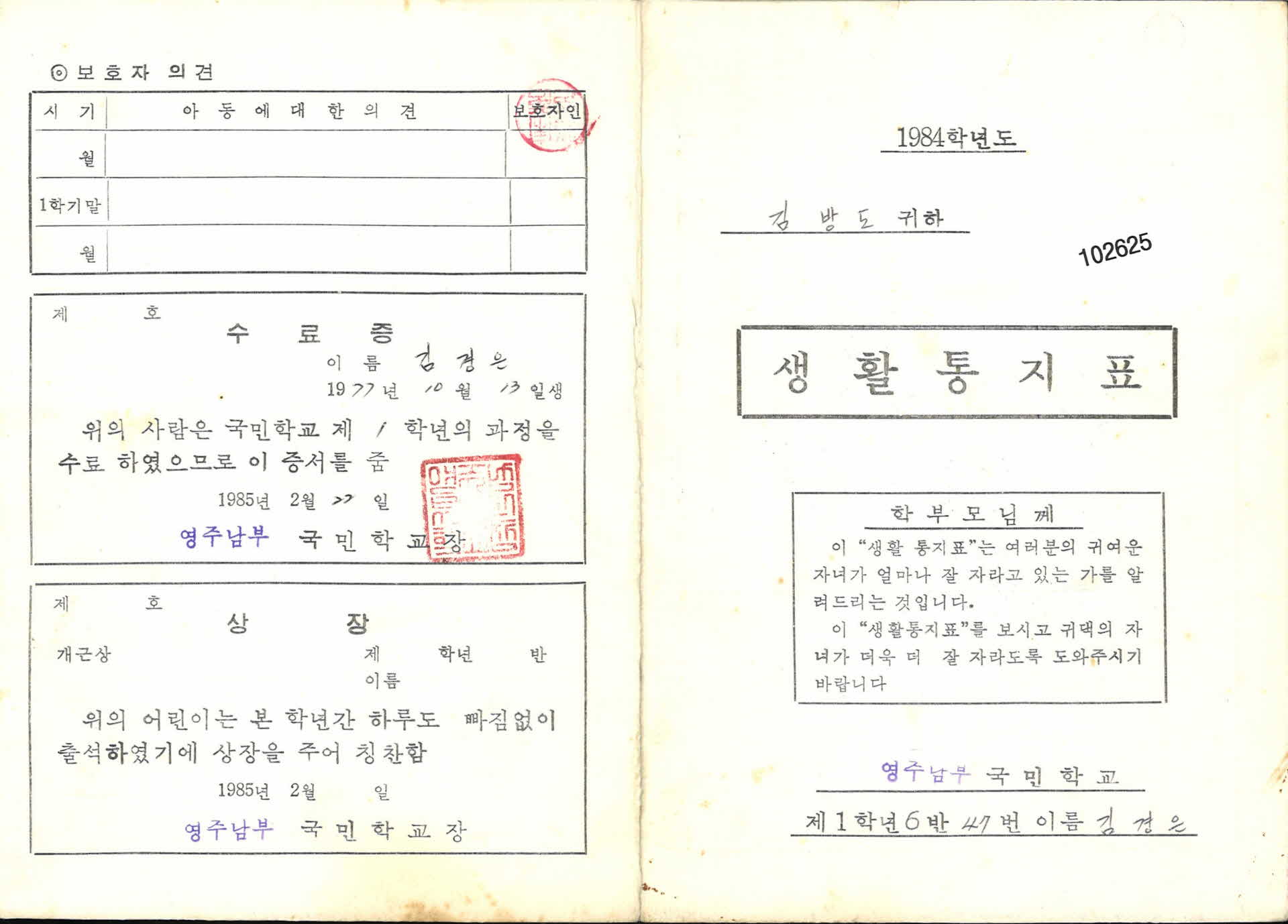 | 기록물명 | 영주남부국민학교 생활통지표 | ||