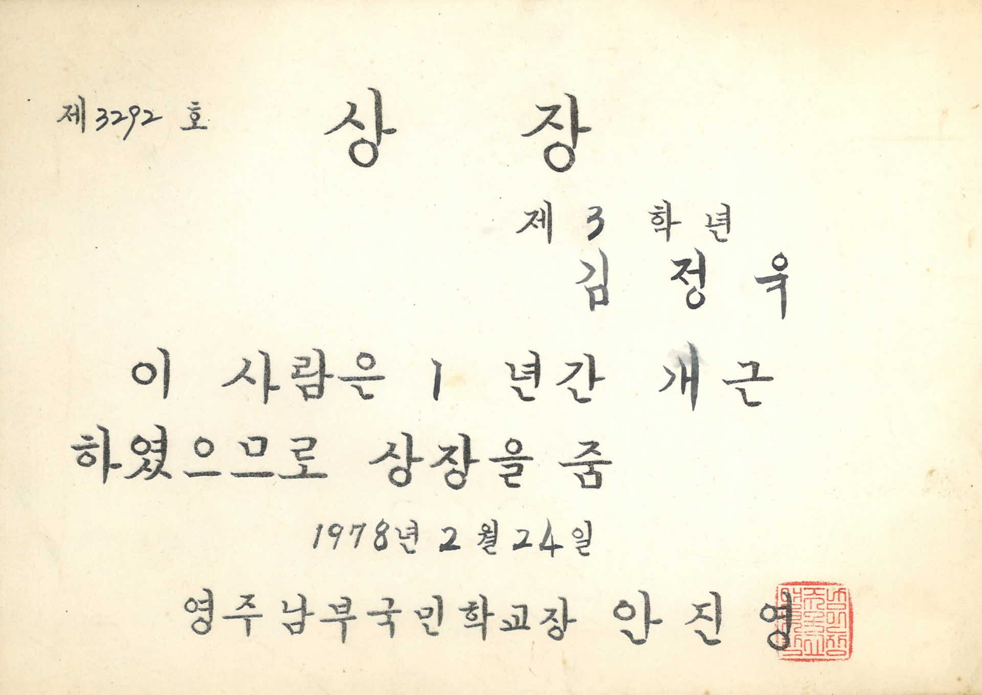 | 기록물명 | 영주남부국민학교 1년개근 | ||