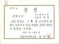 영주남부국민학교 1년개근상장