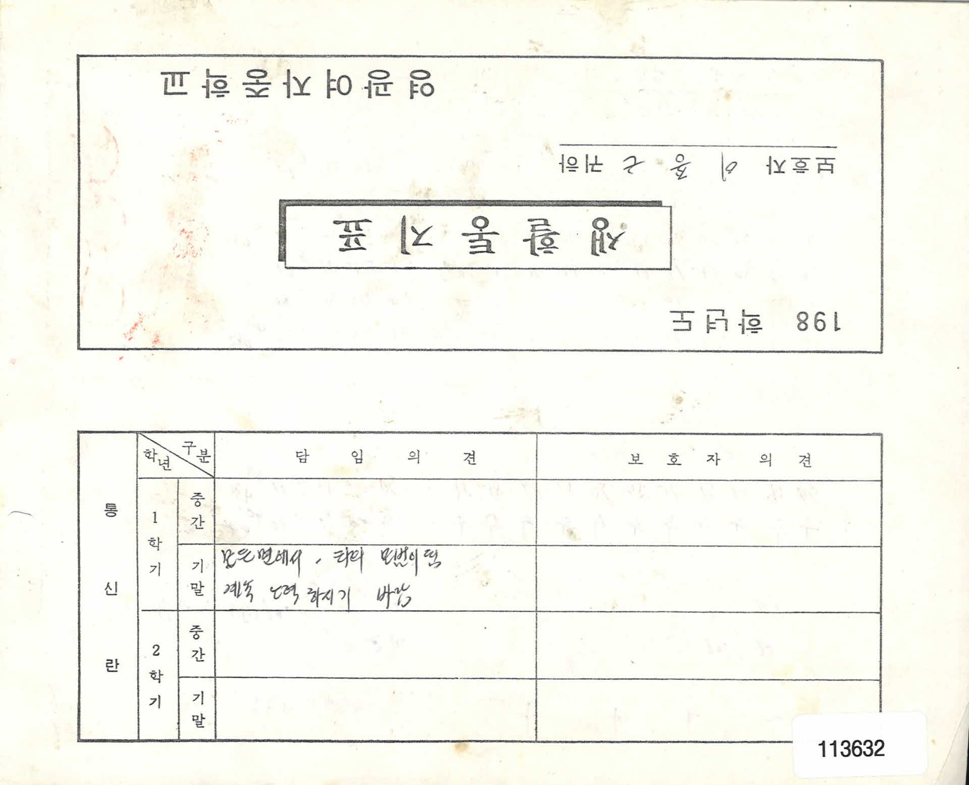 | 기록물명 | 생활통지표 | ||