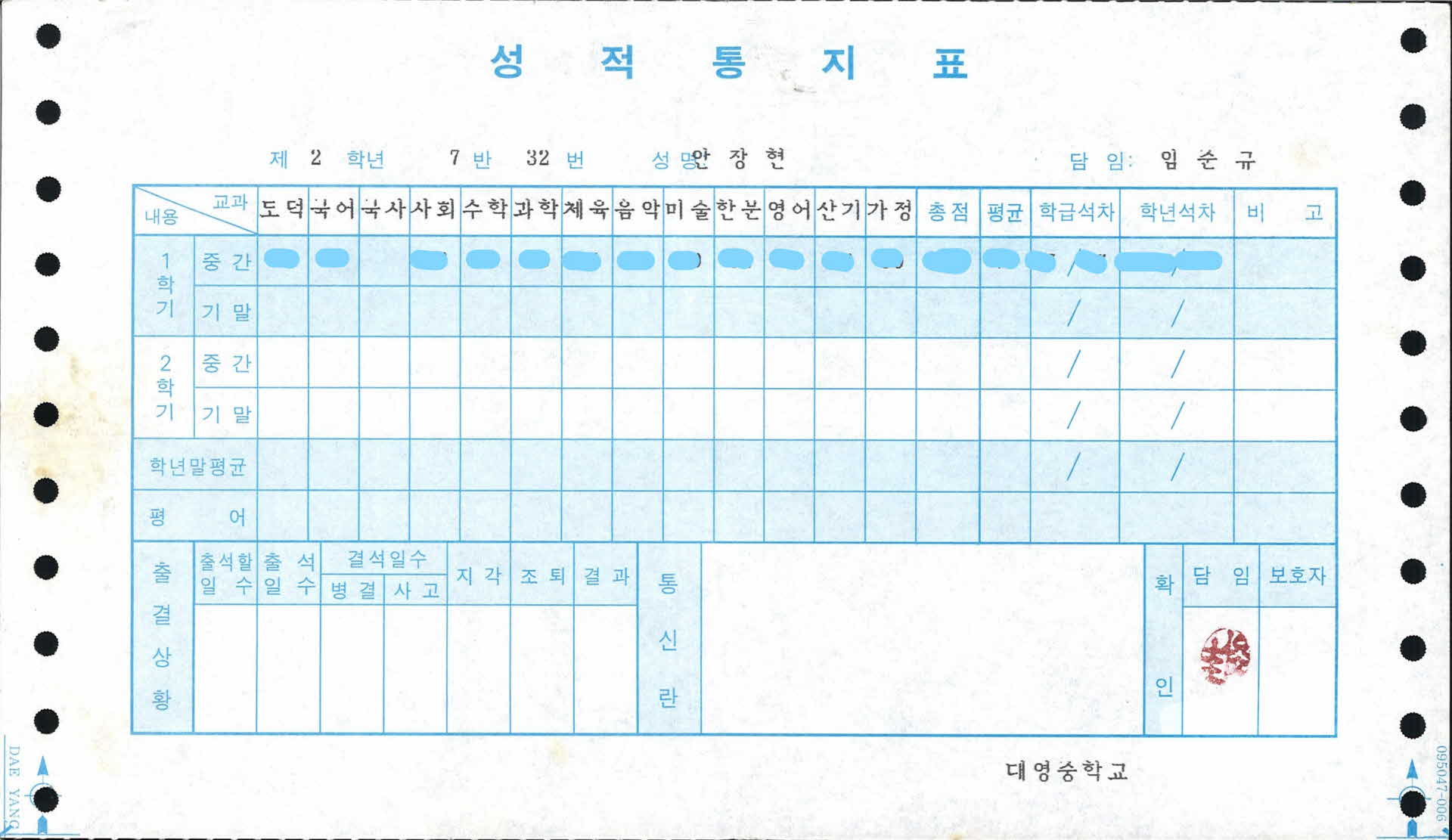 | 기록물명 | 대영중학교 성적통지표 | ||