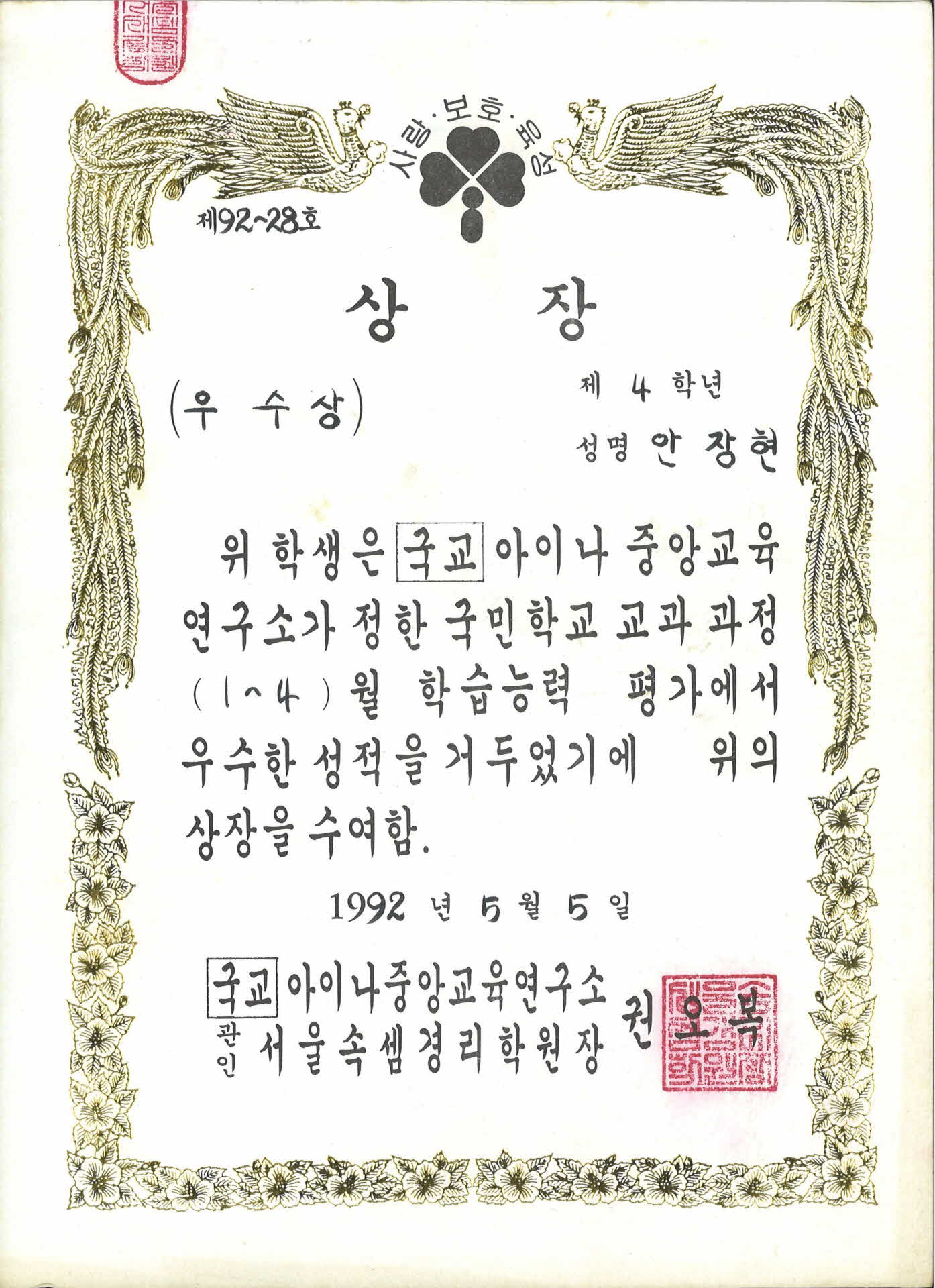 교과과정 1-4월 학습능력 평가 우수상 > 영주, 영주사람
