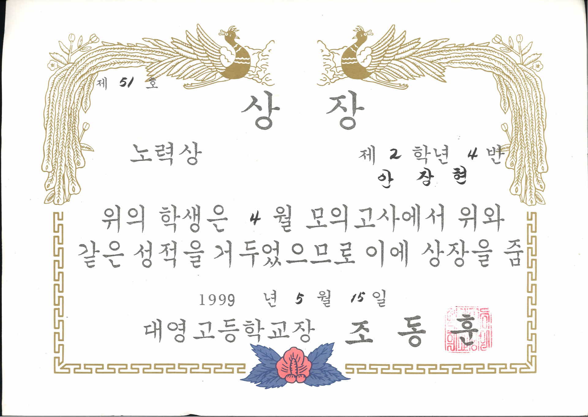 | 기록물명 | 대영고등학교 4월모의고사 노력상 | ||