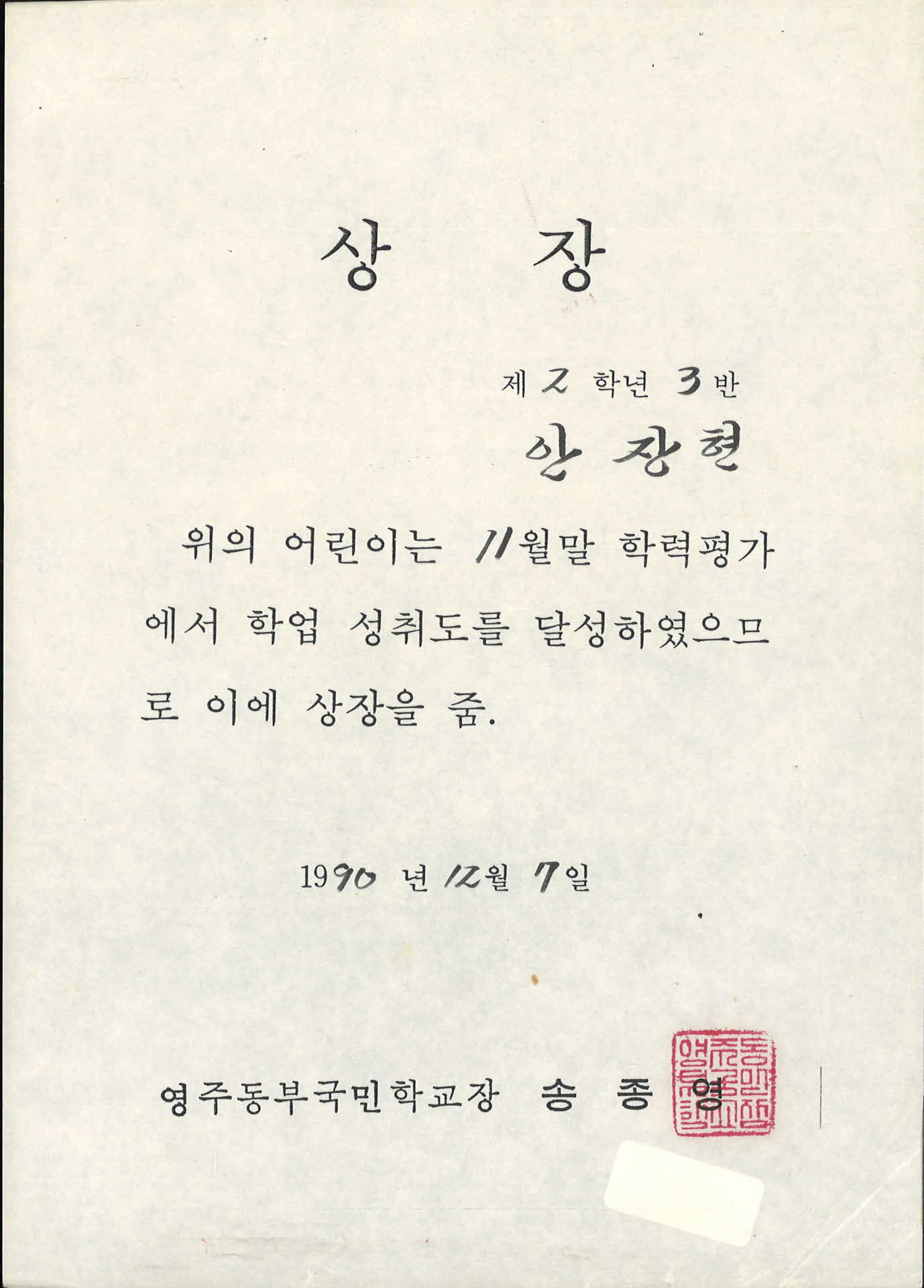| 기록물명 | 영주동부국민학교 11얼말 학력평가 | ||