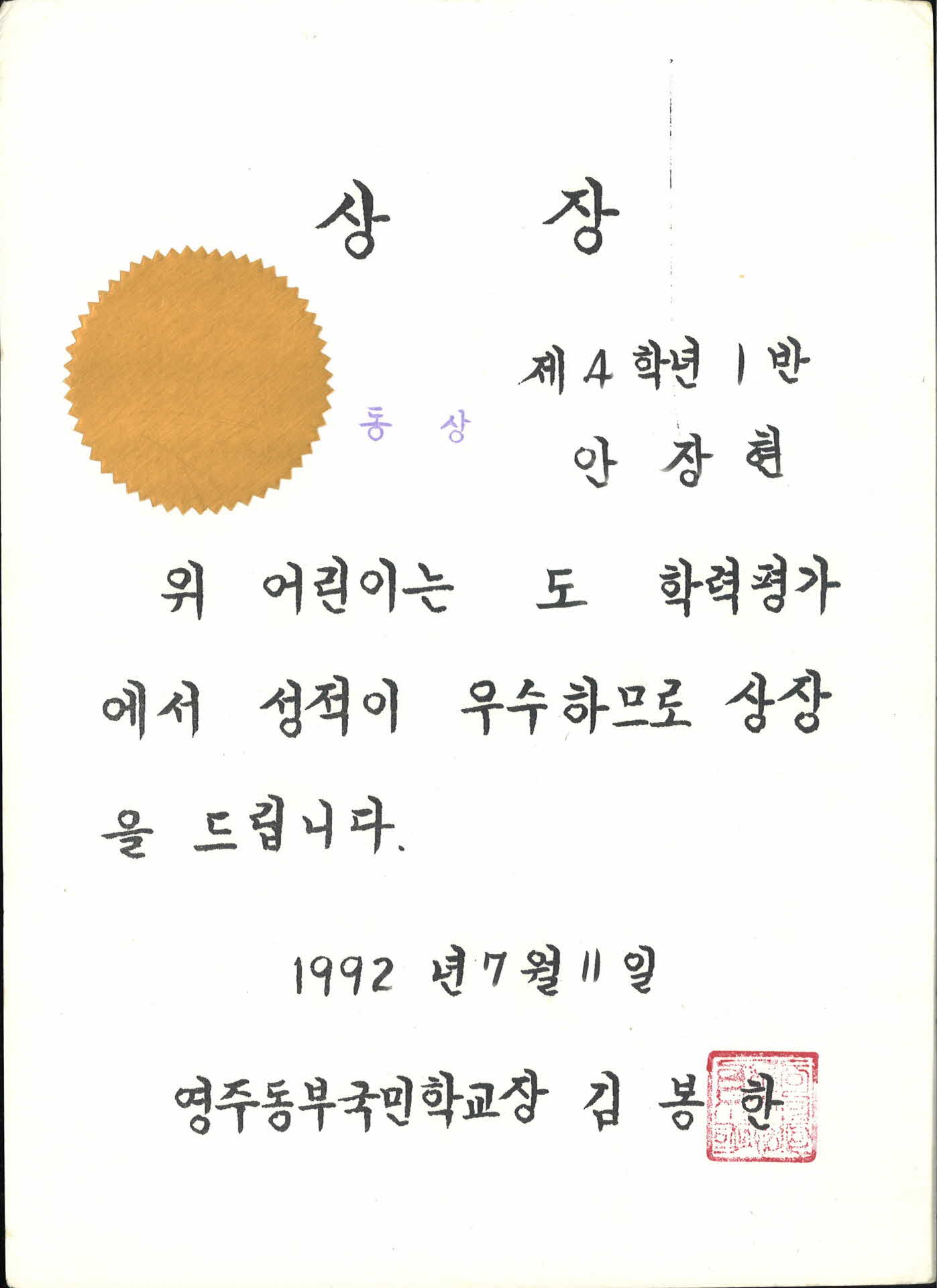 | 기록물명 | 영주동부국민학교 도 학력평가 성적우수 동상 | ||