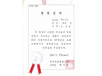 장학증서 97농협조합원자녀 장학생