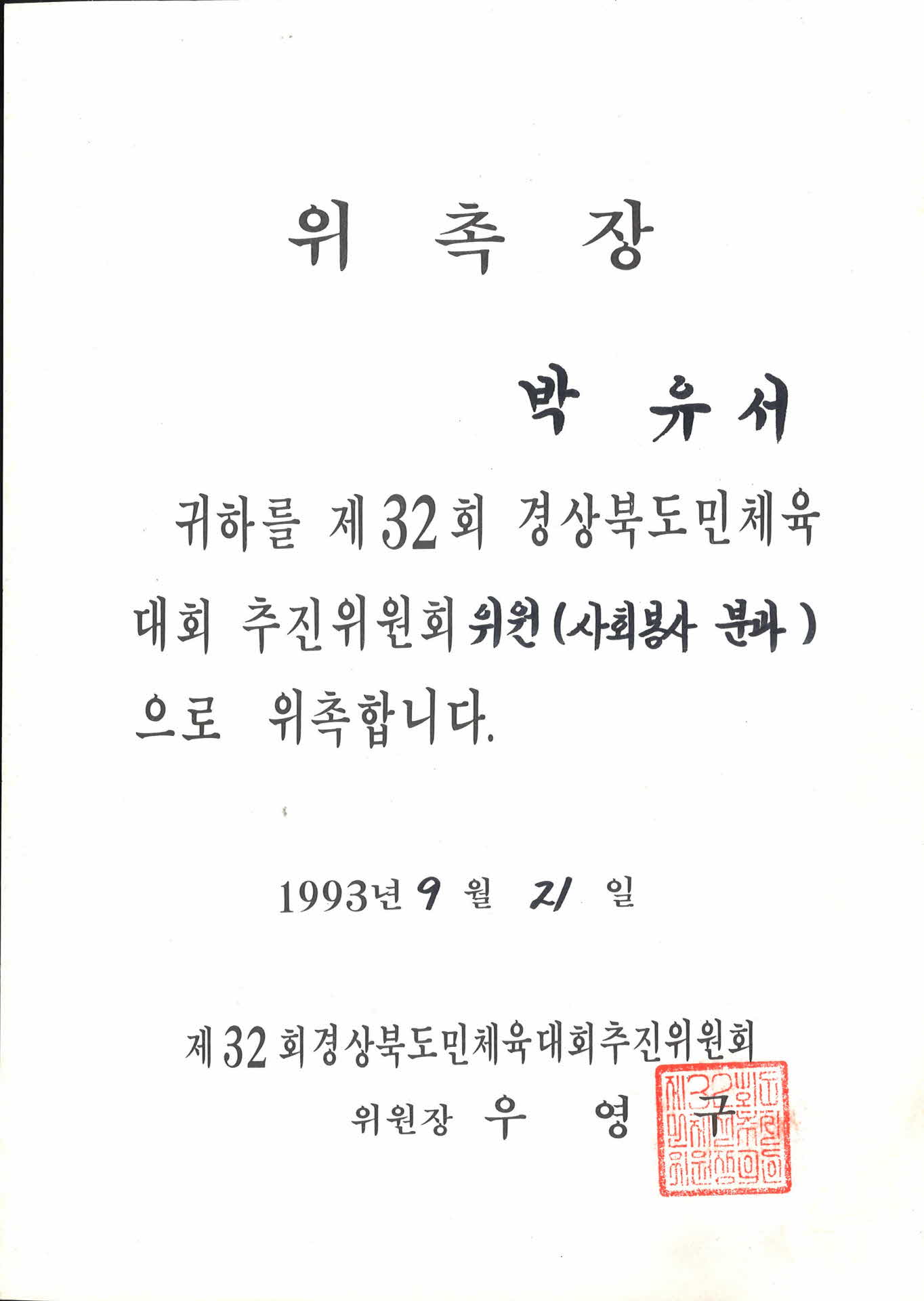 경북도민체육대회추진위원회위촉장