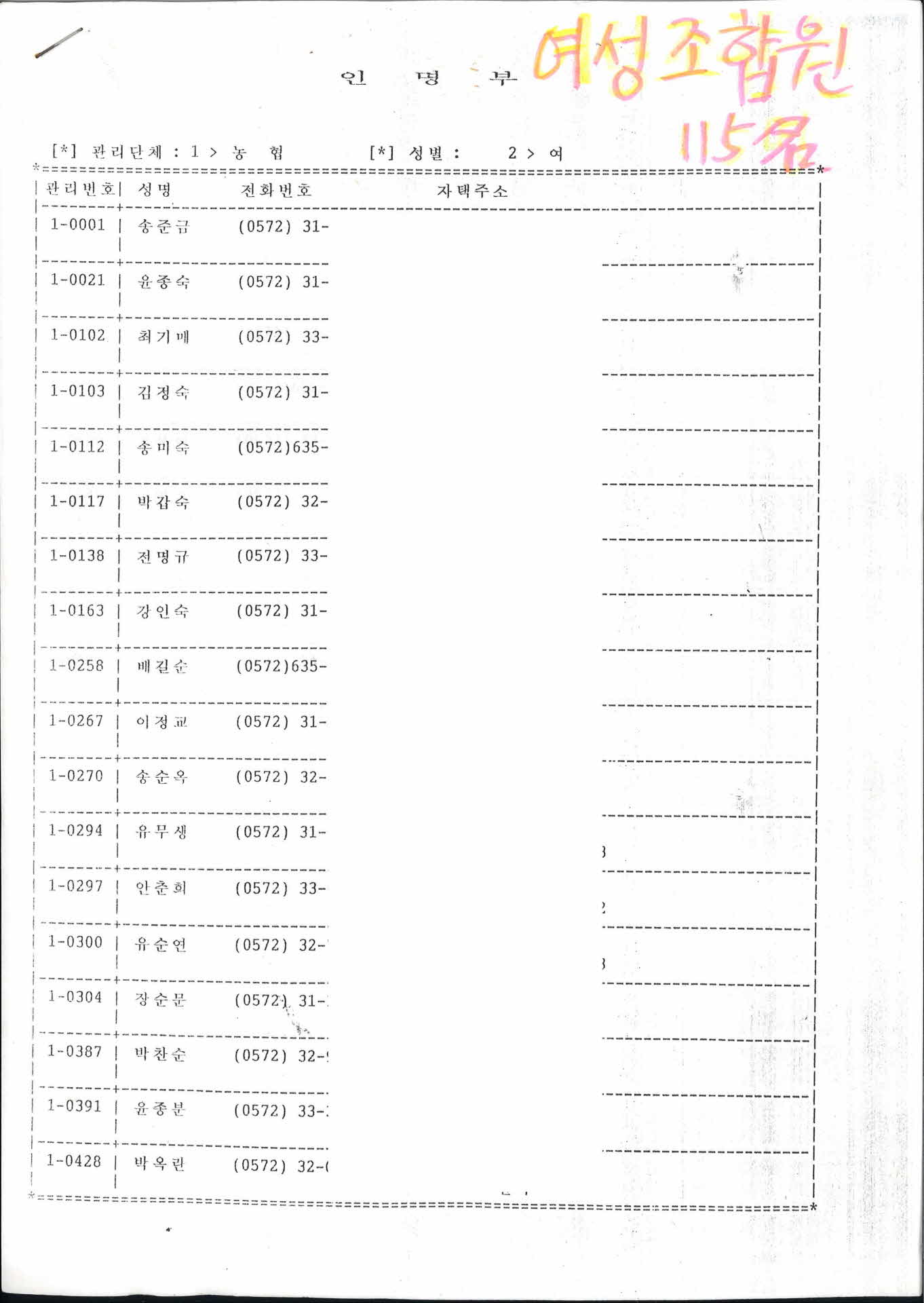 | 기록물명 | 영농회 여성조합원 인명부 | ||