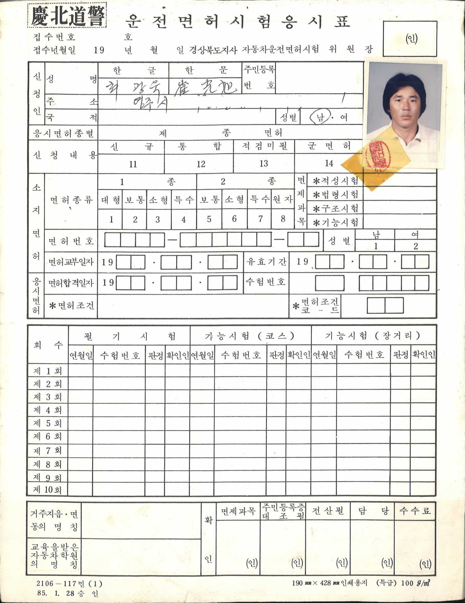 | 기록물명 | 운전면허 시험 응시표 | ||