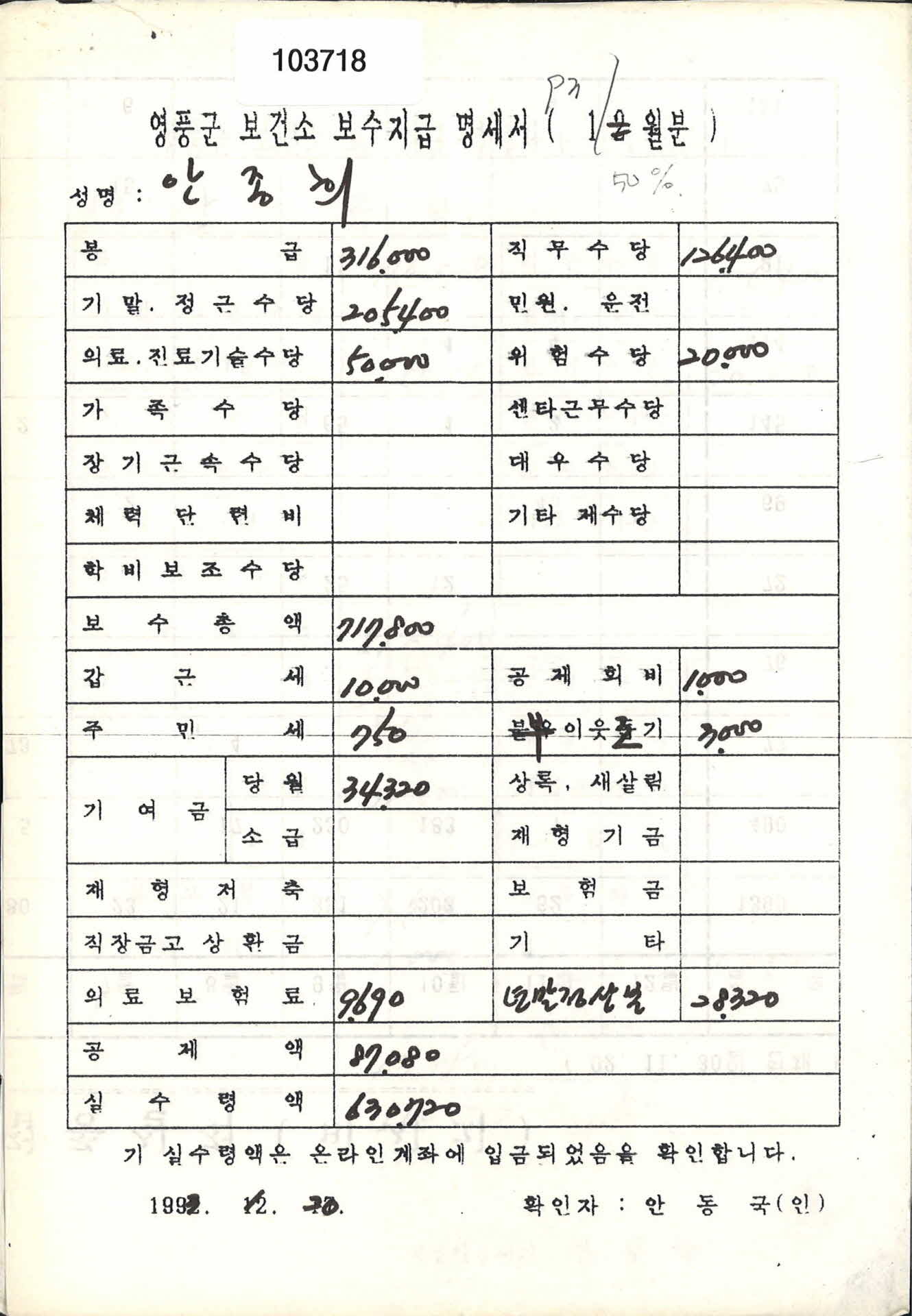 | 기록물명 | 영풍군 보건소 보수지급명세서 | ||