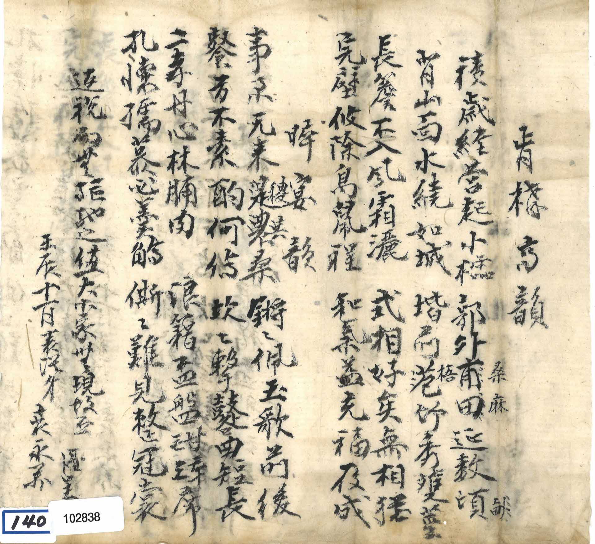 고유번호(102831)과 같은 계기로 임진년(1892) 고종 아우 배영만이 지은 축시