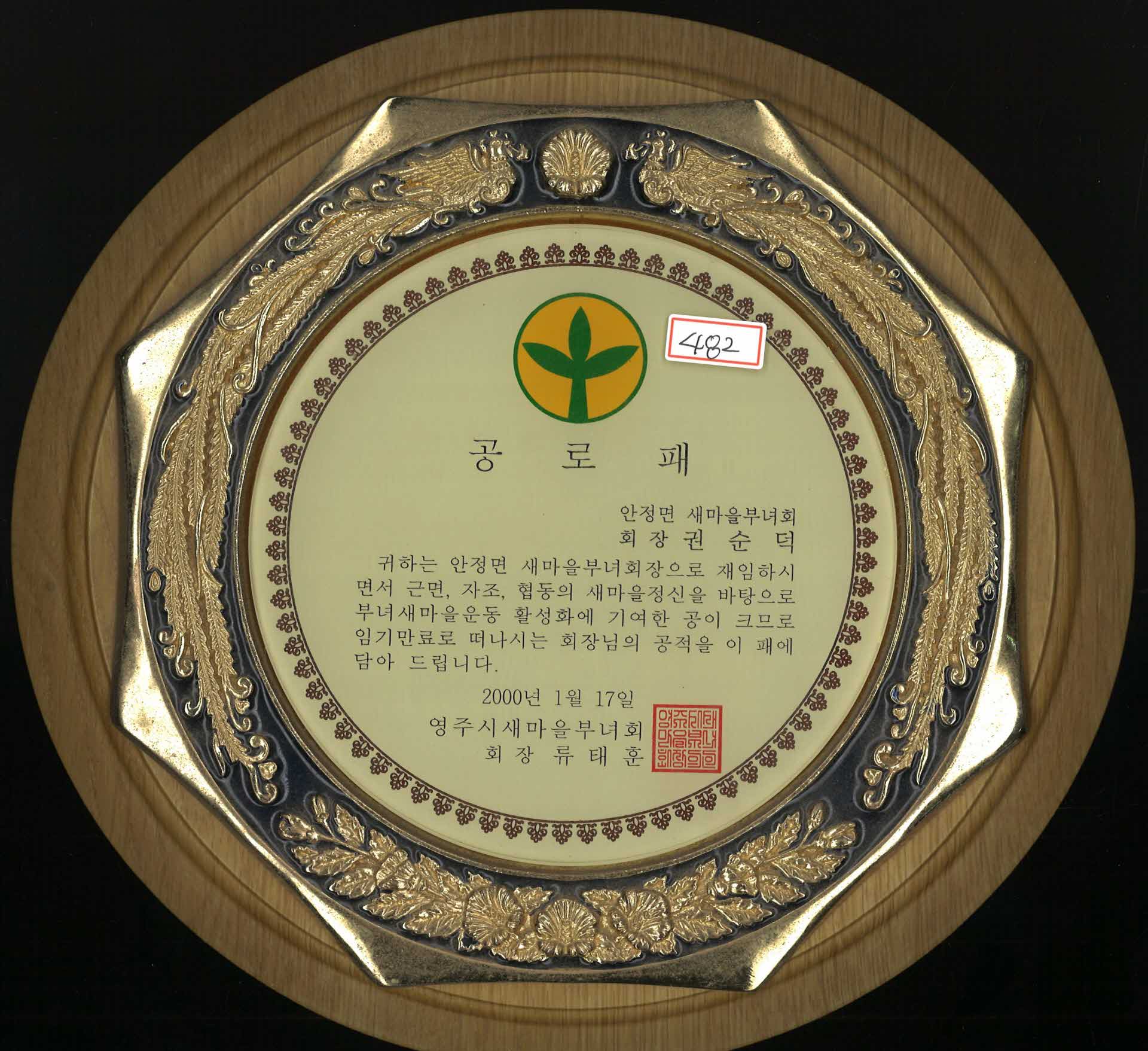 | 기록물명 | 새마을부녀회 공로패 | ||