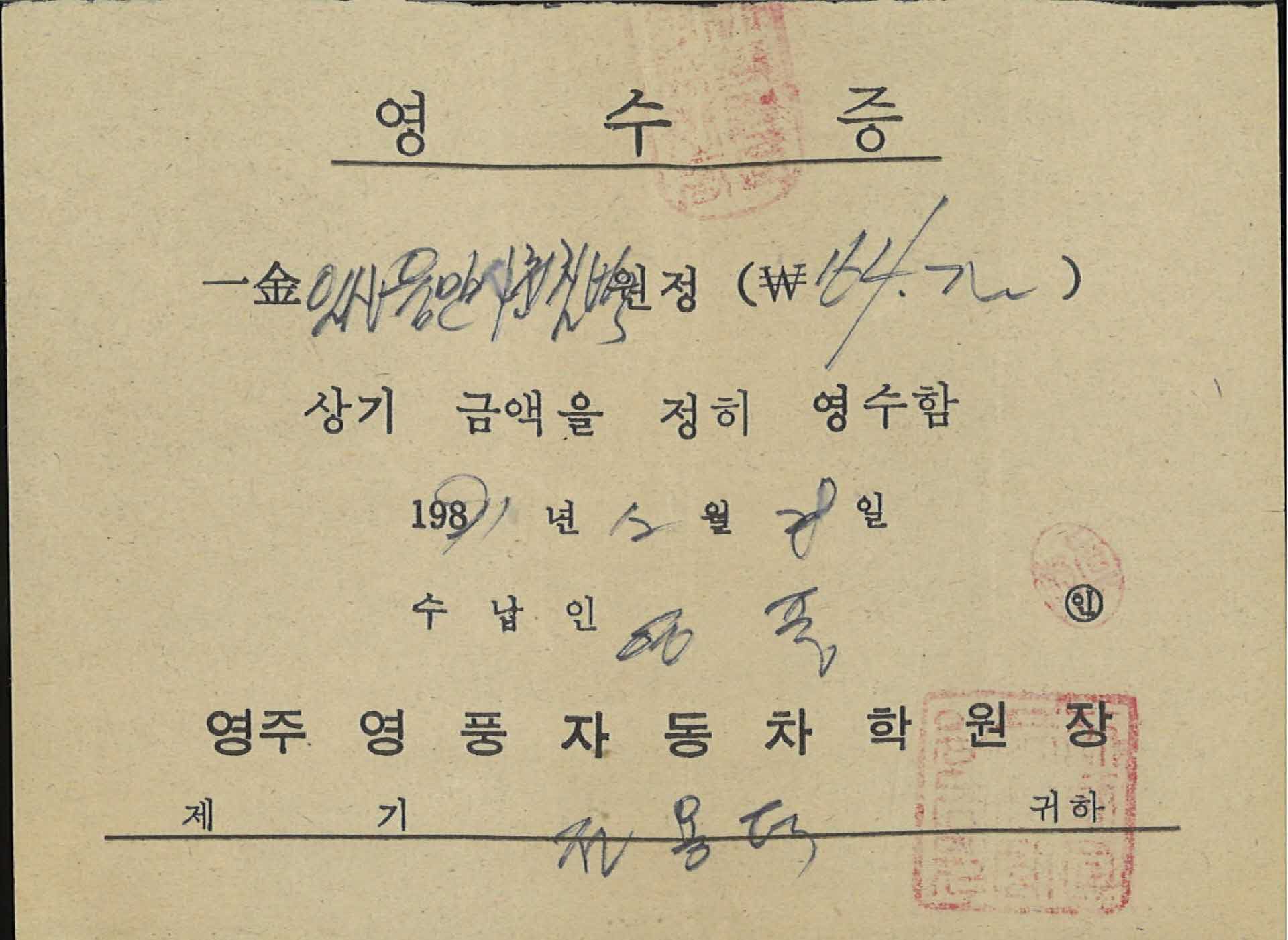 | 기록물명 | 영풍자동차학원 영수증 | ||