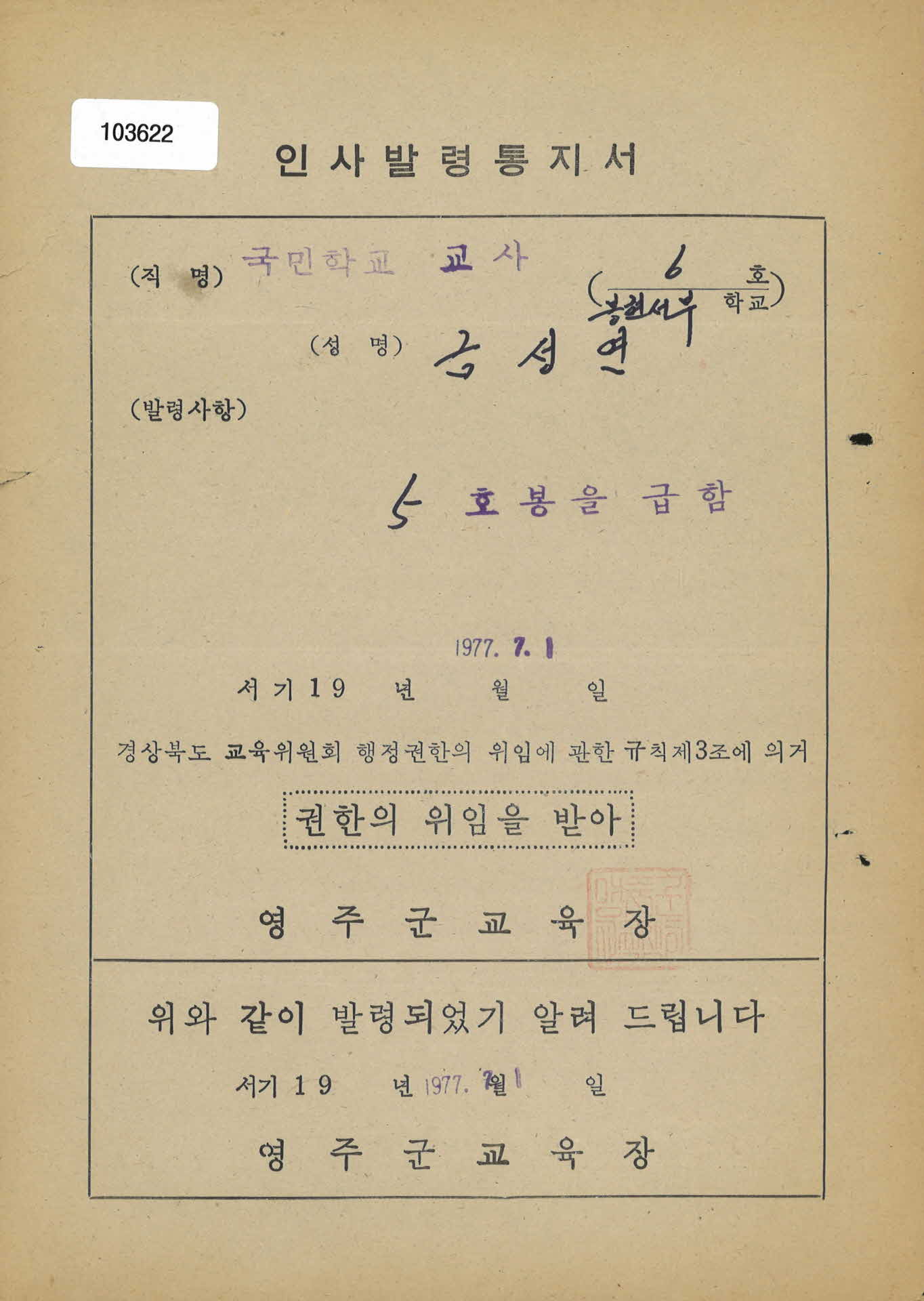 | 기록물번호 | 103622 | 생산년도 | 1977 |
