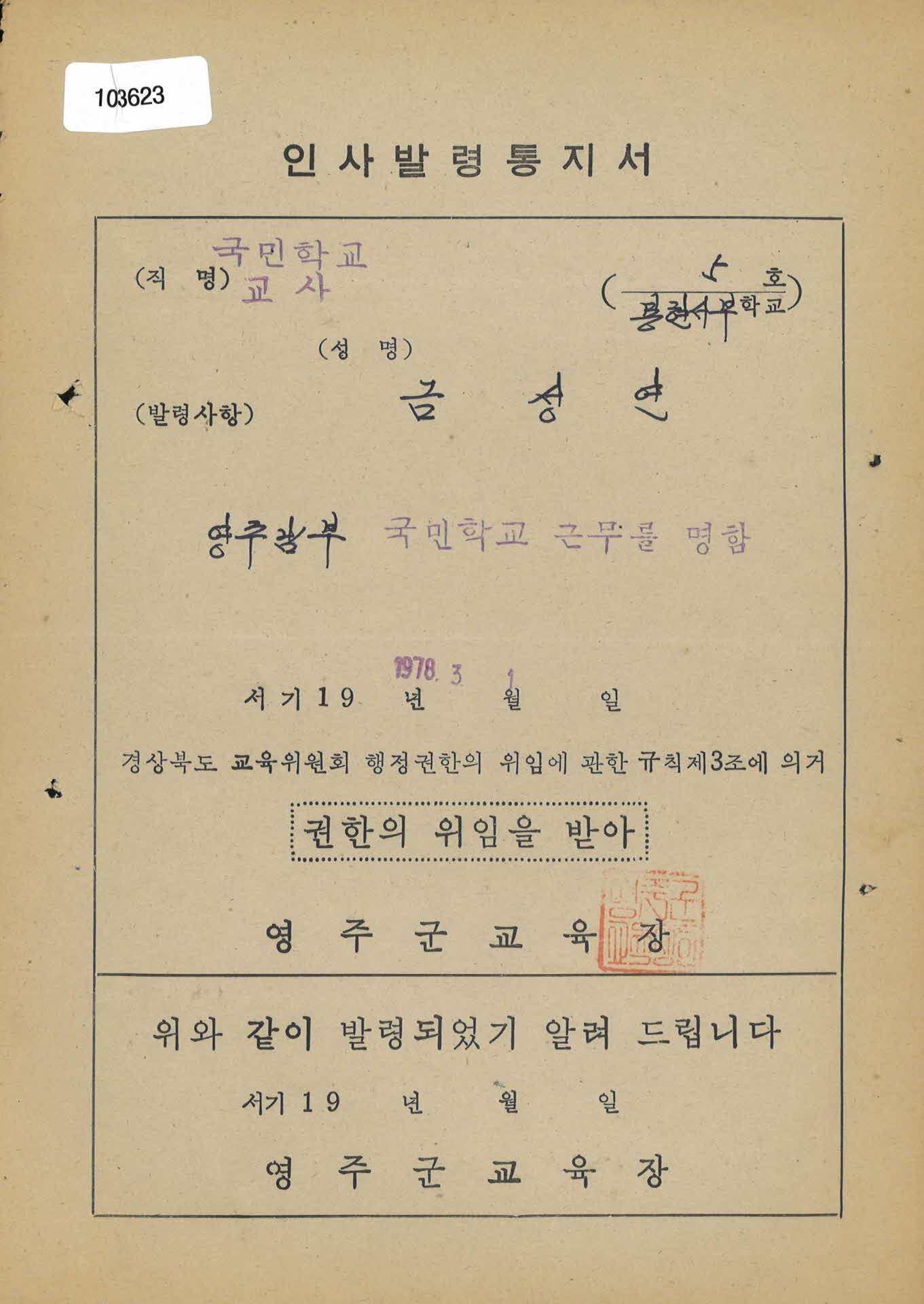 | 기록물번호 | 103623 | 생산년도 | 1978 |