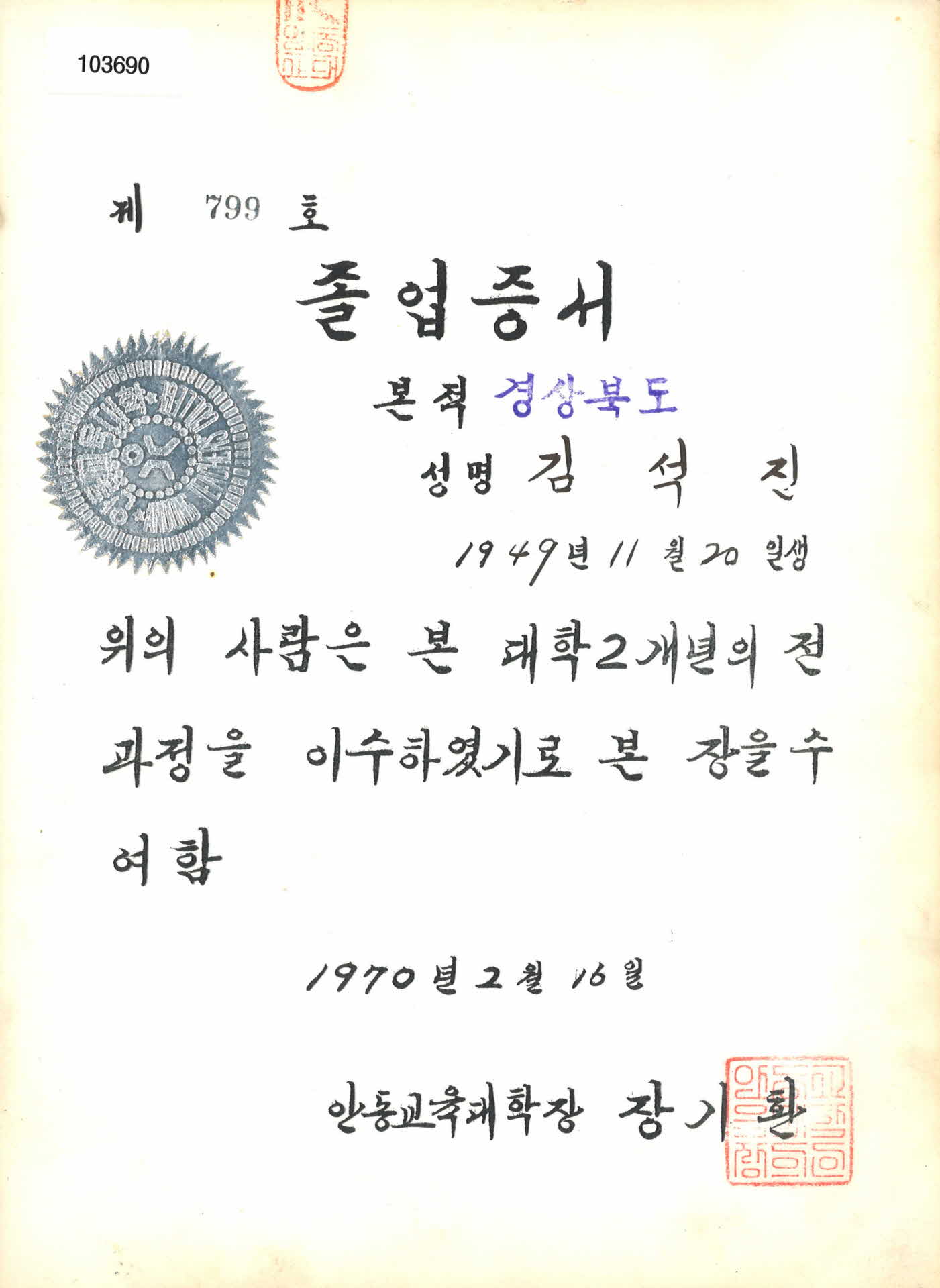 | 기록물명 | 안동교육대학 졸업증서 | ||